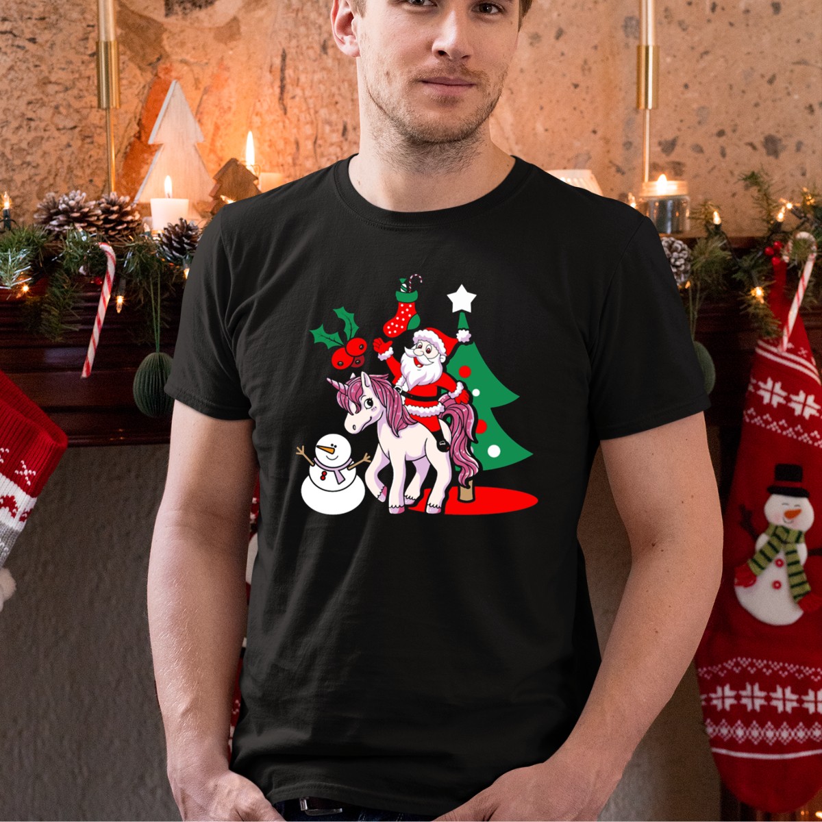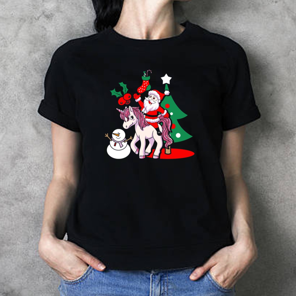 Celebrate the holiday spirit with our whimsical “Santa On Unicorn With Christmas Tree And Snowman” T-shirt! Perfect for the festive season, this fun and vibrant design is ideal for casual gatherings, themed events, or simply spreading cheer in your everyday wear. Made for those who love to embrace the magic of Christmas, this shirt is a unique blend of comfort and creativity, bringing joy to everyone around you.