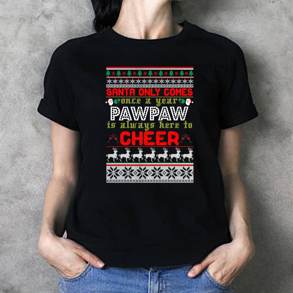 Celebrate the holiday spirit with our “Santa Only Comes Once A Year Pawpaw Is Always Here To Cheer” T-shirt! Perfect for festive gatherings, family parties, or cozy nights in, this shirt brings a playful twist to Christmas traditions. Designed for those who cherish the joy of family and the magic of the season, this fan-made graphic tee is a delightful addition to your casual wear collection.
