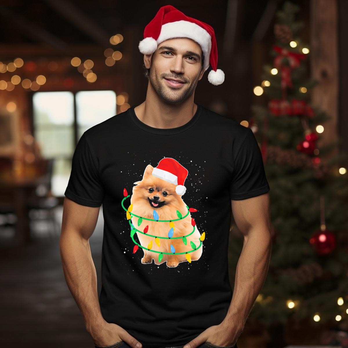 Bring the festive spirit to life with our Santa Pomeranian Wrapped In Colorful Christmas Lights T-shirt! Perfect for dog lovers and holiday enthusiasts alike, this playful design captures the joy of the season in a way that’s both fun and stylish. Ideal for casual wear, themed events, or just spreading cheer during daily outings, this shirt is sure to make you the center of attention at any gathering. Plus, it’s fan-made and proudly printed in the USA, ensuring a unique addition to your holiday wardrobe.