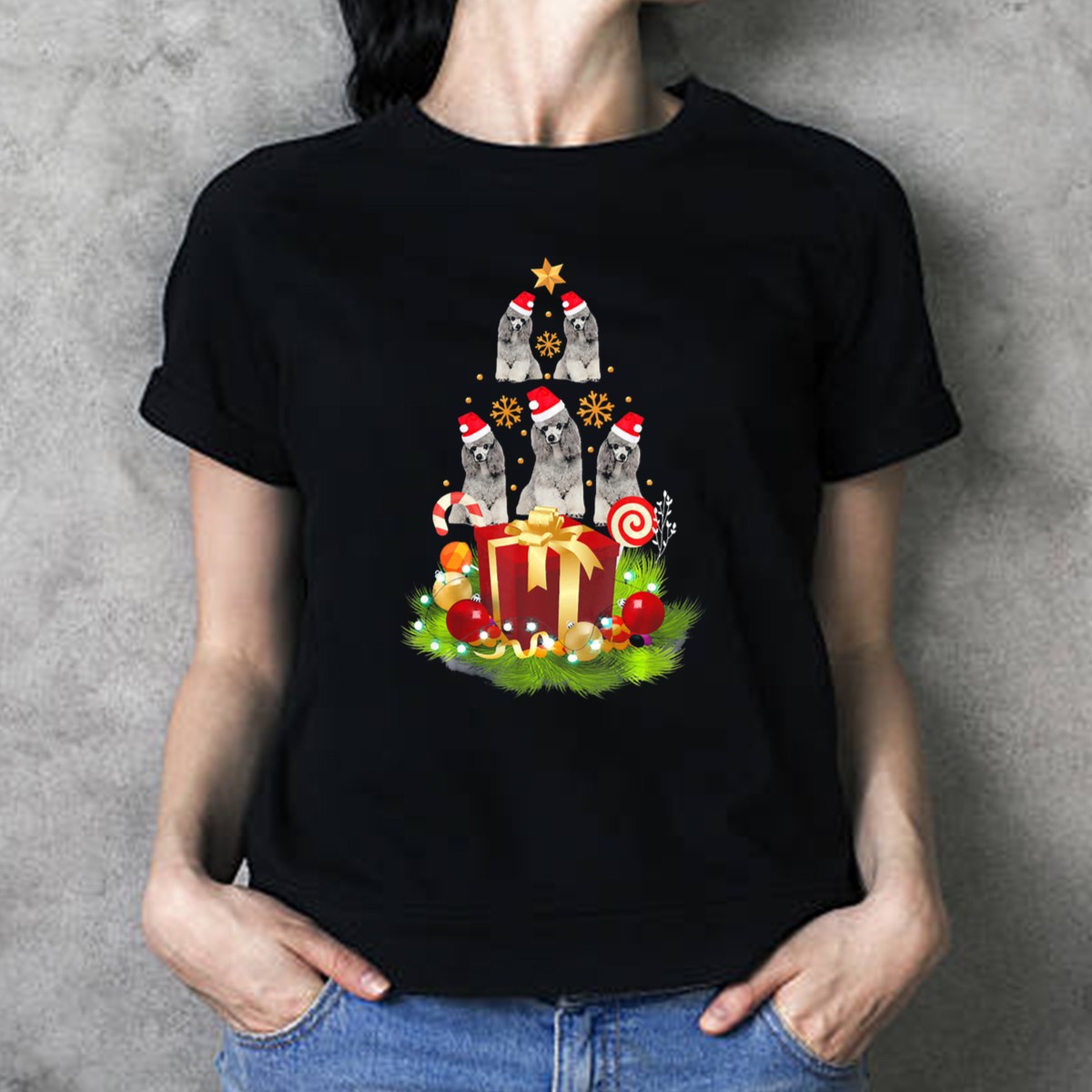 Celebrate the festive season in style with our Santa Poodle Decorated Christmas Tree T-Shirt! Perfect for dog lovers and holiday enthusiasts alike, this fun and whimsical design showcases a charming poodle surrounded by a beautifully adorned Christmas tree, complete with gifts and snowflakes. Ideal for casual wear, themed events, or just spreading holiday cheer, this shirt is a delightful addition to your all-season wardrobe.