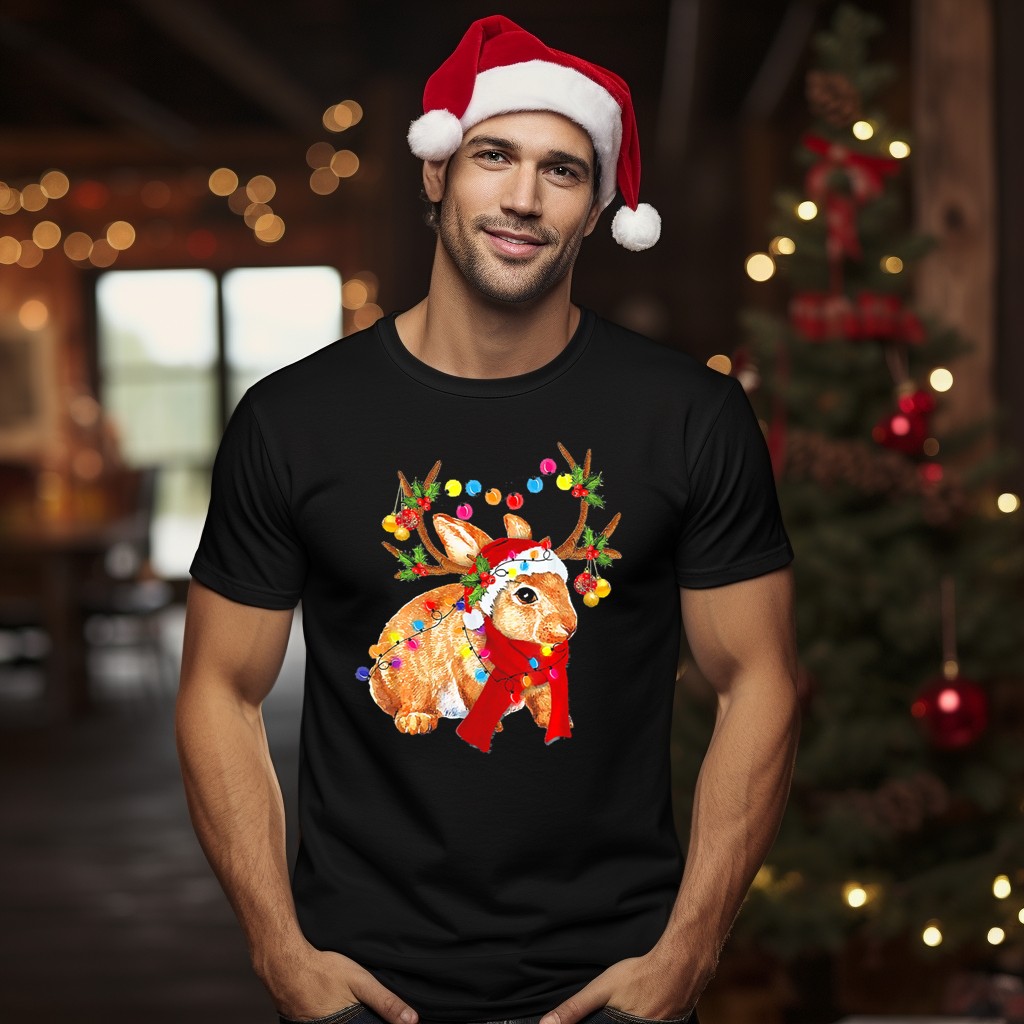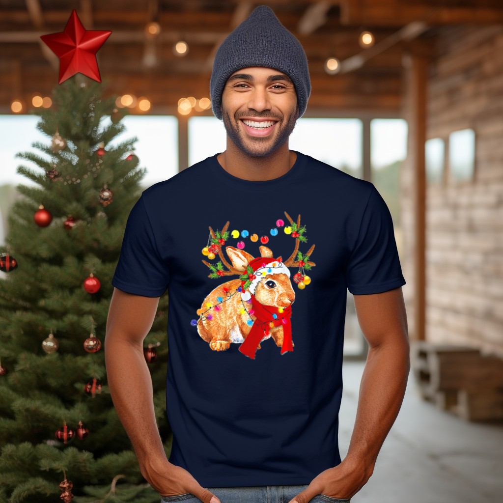 Celebrate the festive spirit with our Santa Rabbit Reindeer Lights Christmas T-Shirt! Perfect for holiday gatherings, themed events, or simply spreading cheer in your daily wear, this shirt features a whimsical design that brings joy and laughter to everyone around. Made for those who love to embrace the magic of the season, this fan-made graphic tee is printed in the USA, ensuring quality and uniqueness in every piece.