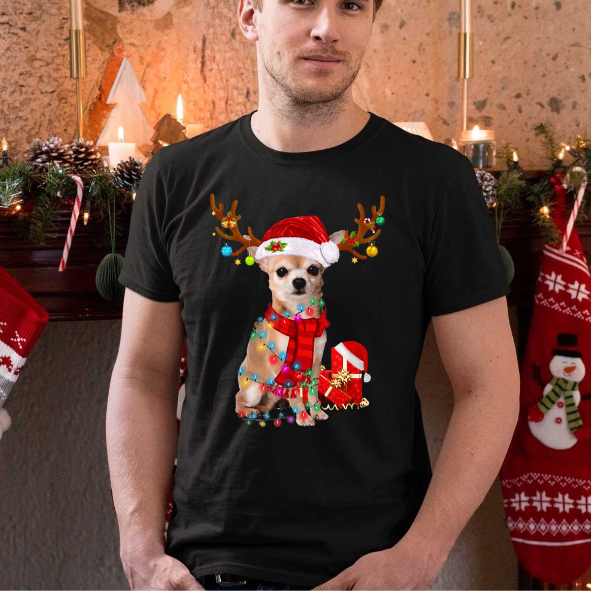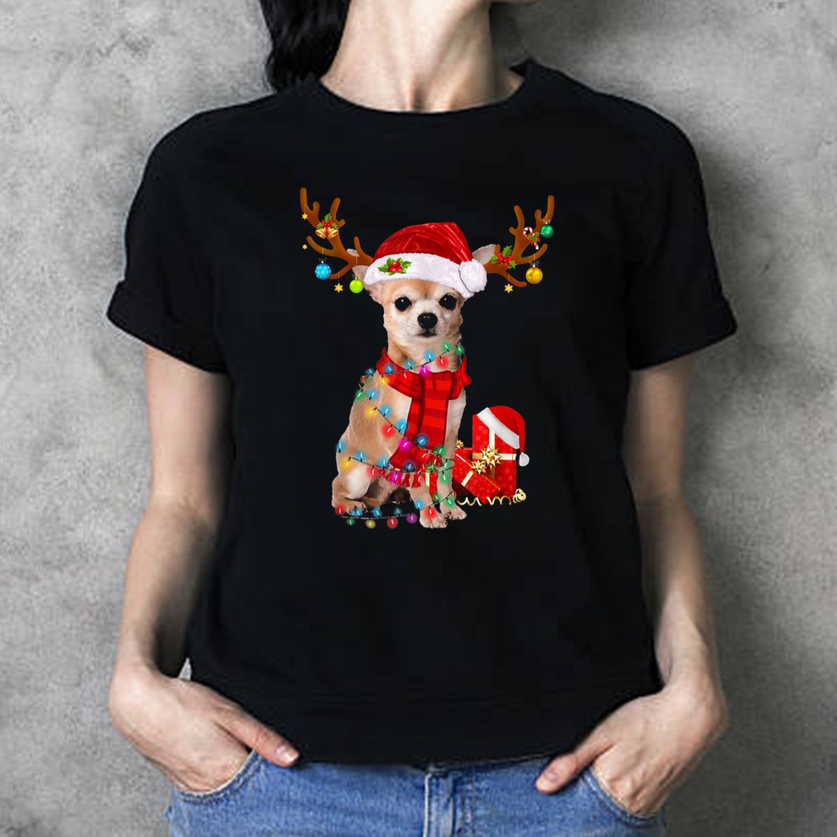 Be the first to review “Santa Reindeer Antlers Chihuahua Christmas Lights T Shirt”