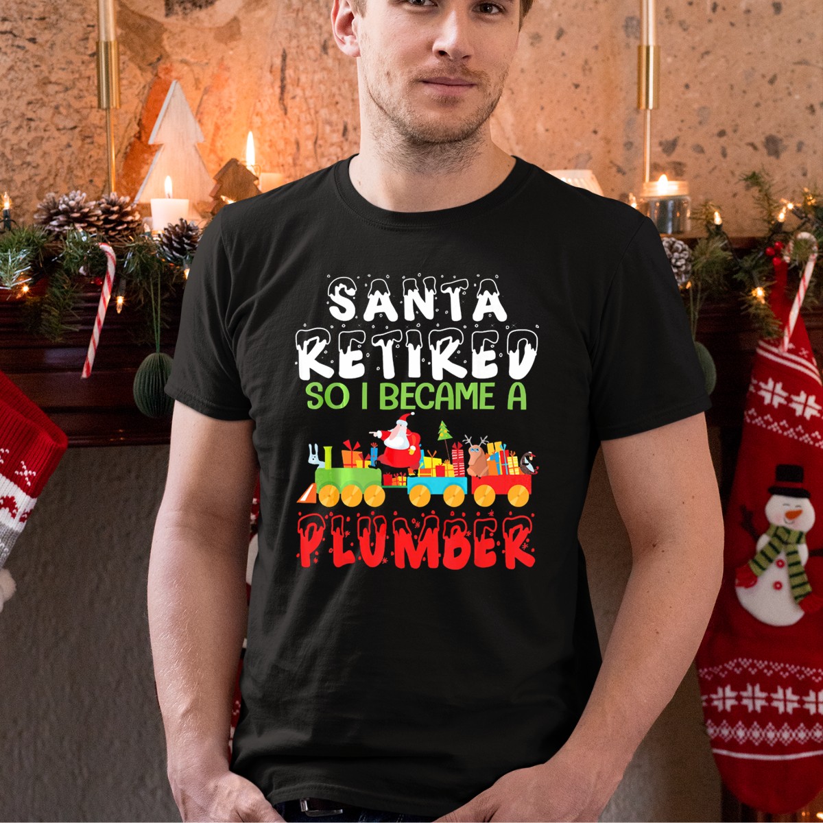 Celebrate the holiday season with our Santa Retired Train Plumber T-Shirt, a perfect blend of festive cheer and playful charm. Designed for those who love Christmas and all its whimsical elements, this shirt features a delightful graphic of Santa Claus alongside his trusty reindeer and gifts, making it an ideal choice for casual wear, themed events, or daily outings during the festive season. Made with care in the USA, this fan-made design will surely bring smiles and holiday spirit wherever you go.