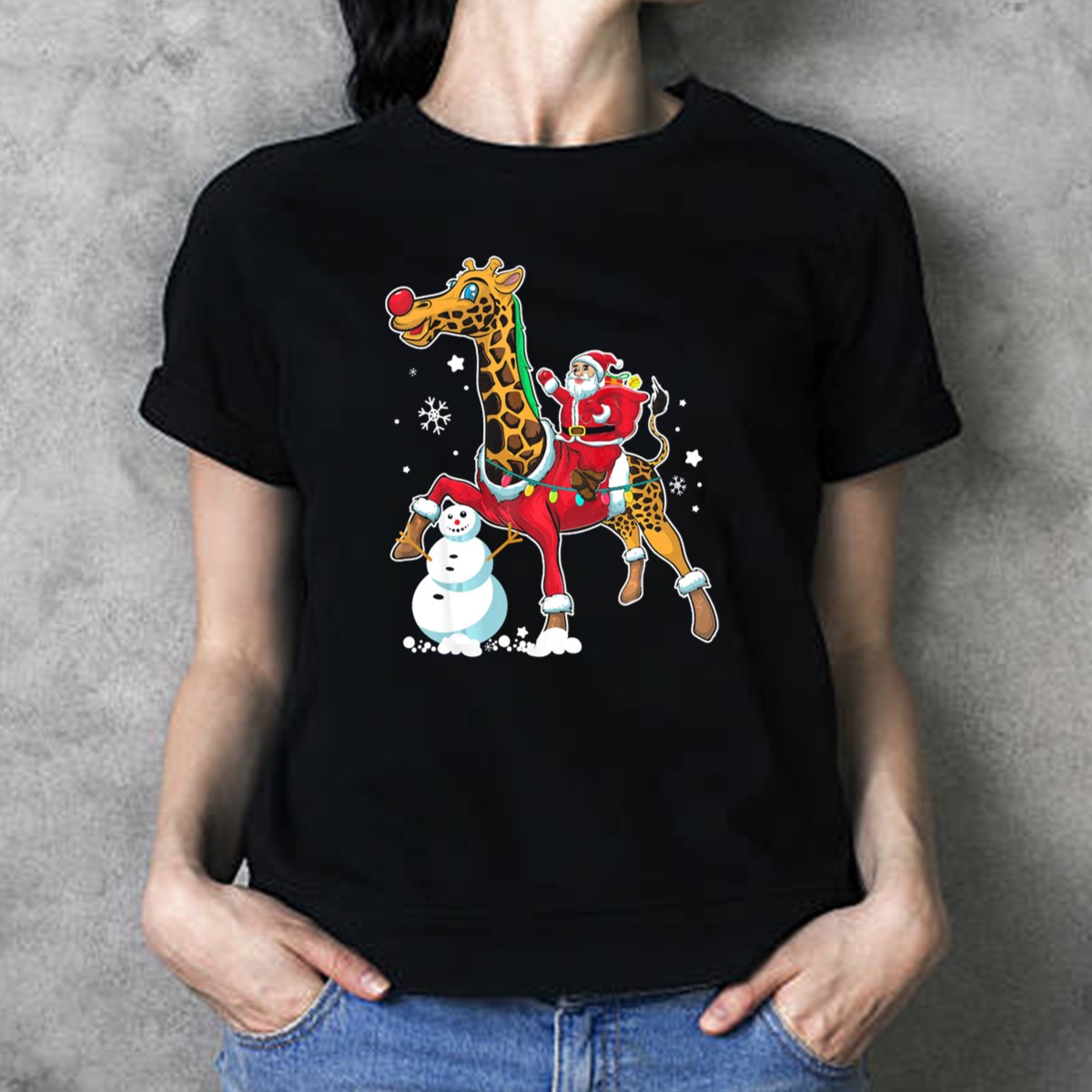 Get ready to spread some holiday cheer with our Santa Riding Giraffe with Snowman and Christmas Lights T-Shirt! This fun and whimsical design is perfect for anyone looking to add a touch of festive spirit to their casual wardrobe. Ideal for themed events, holiday parties, or just lounging around during the joyful season, this shirt is not only stylish but also a conversation starter. Made with fan-made artistry and printed in the USA, it brings a unique flair to your everyday look.