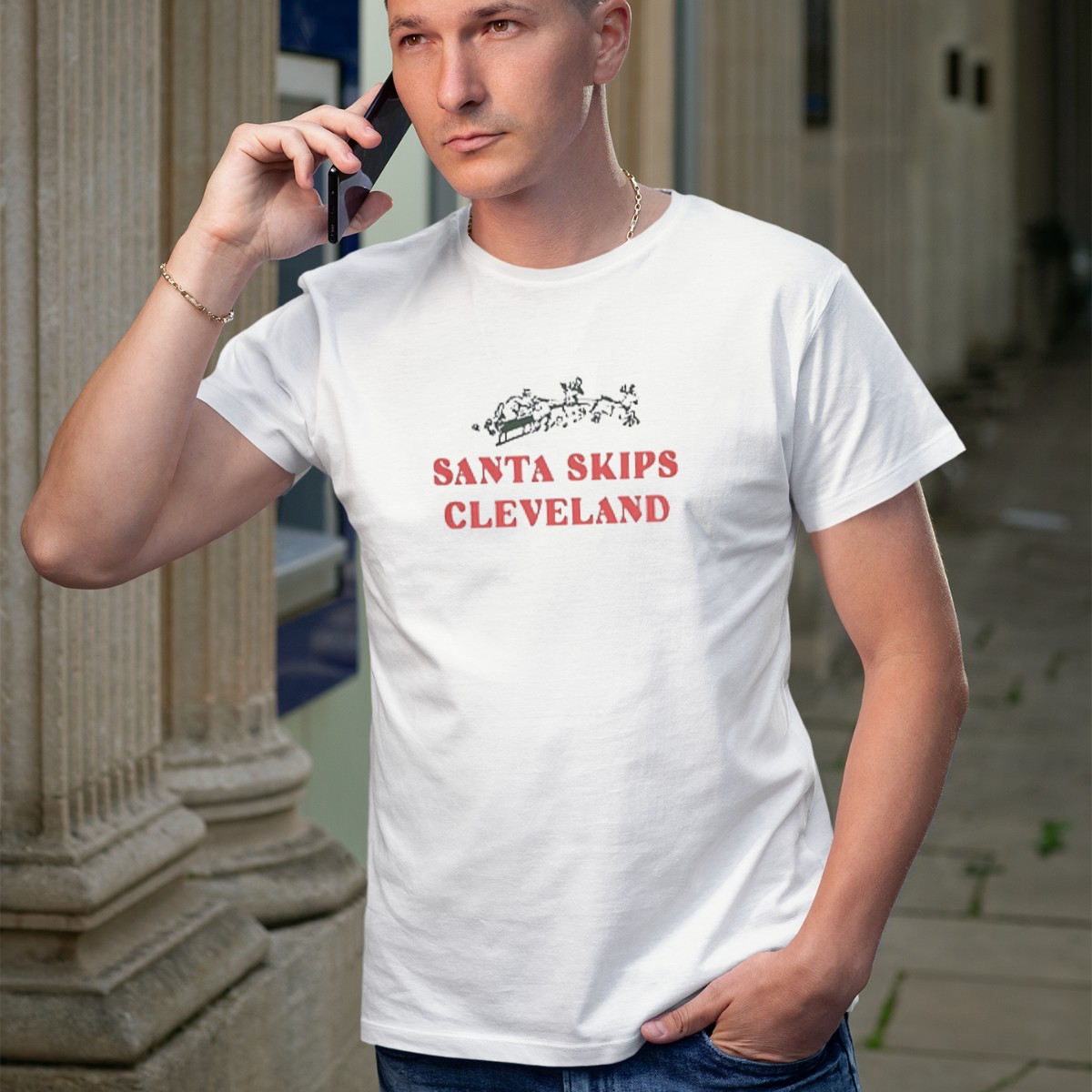 Celebrate the holiday season with our “Santa Skips Cleveland” Christmas T-shirt, perfect for those who love to add a touch of humor to their festive wardrobe. This fan-made design features a playful twist on the classic Christmas tale, making it an ideal choice for casual wear, themed events, and daily outings during the holidays. Crafted with care in the USA, this shirt is sure to spark smiles and laughter wherever you go!