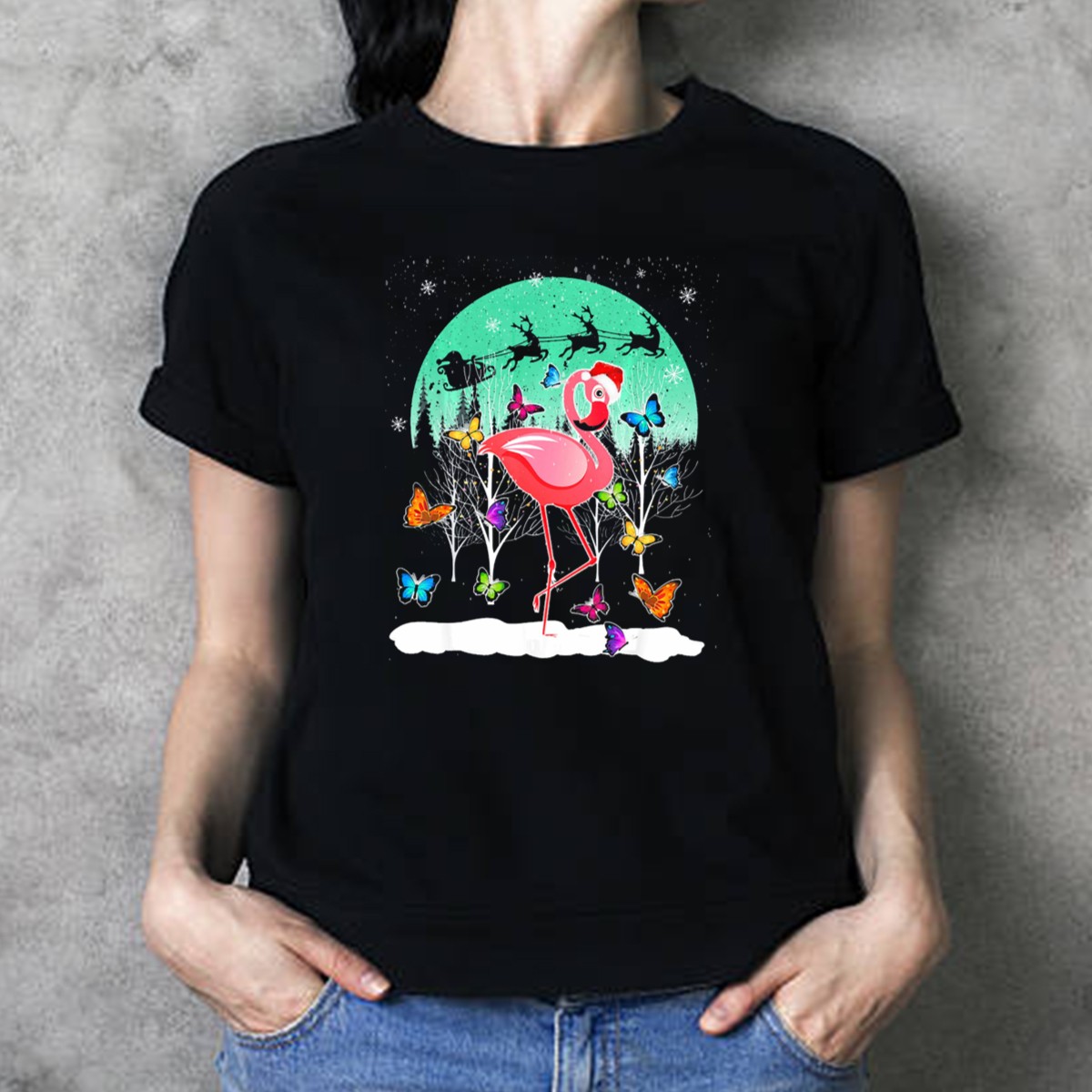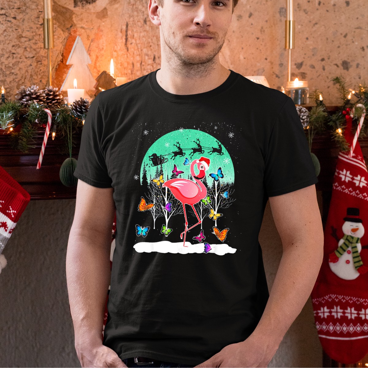 Be the first to review “Santa Sleigh Christmas Flamingo With Butterflies In Snow Scene T-Shirt”