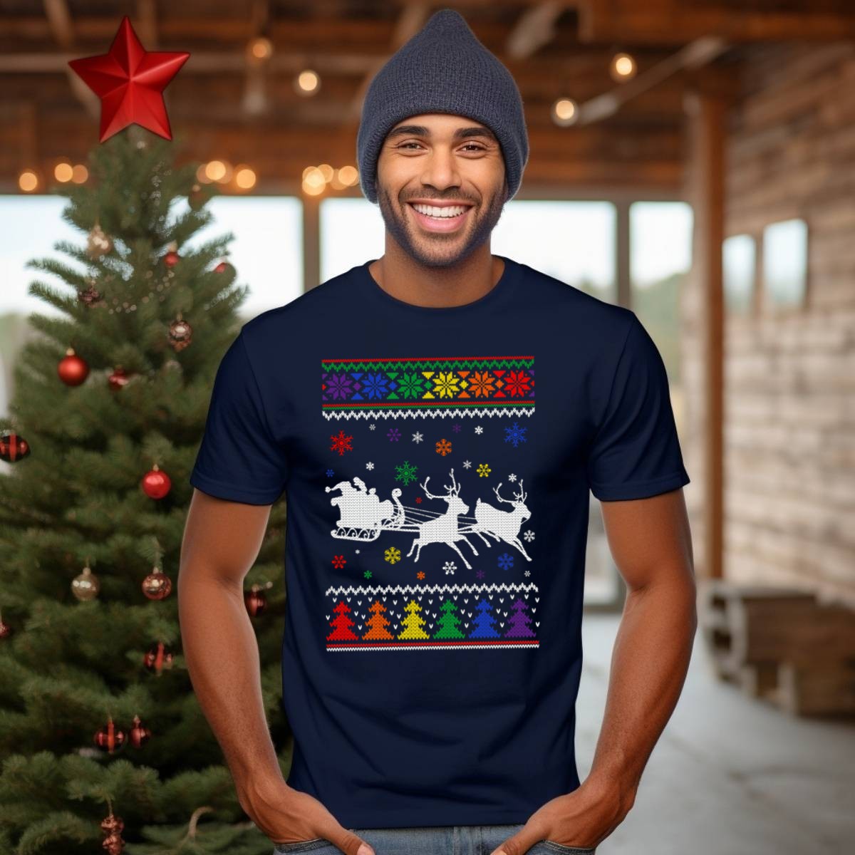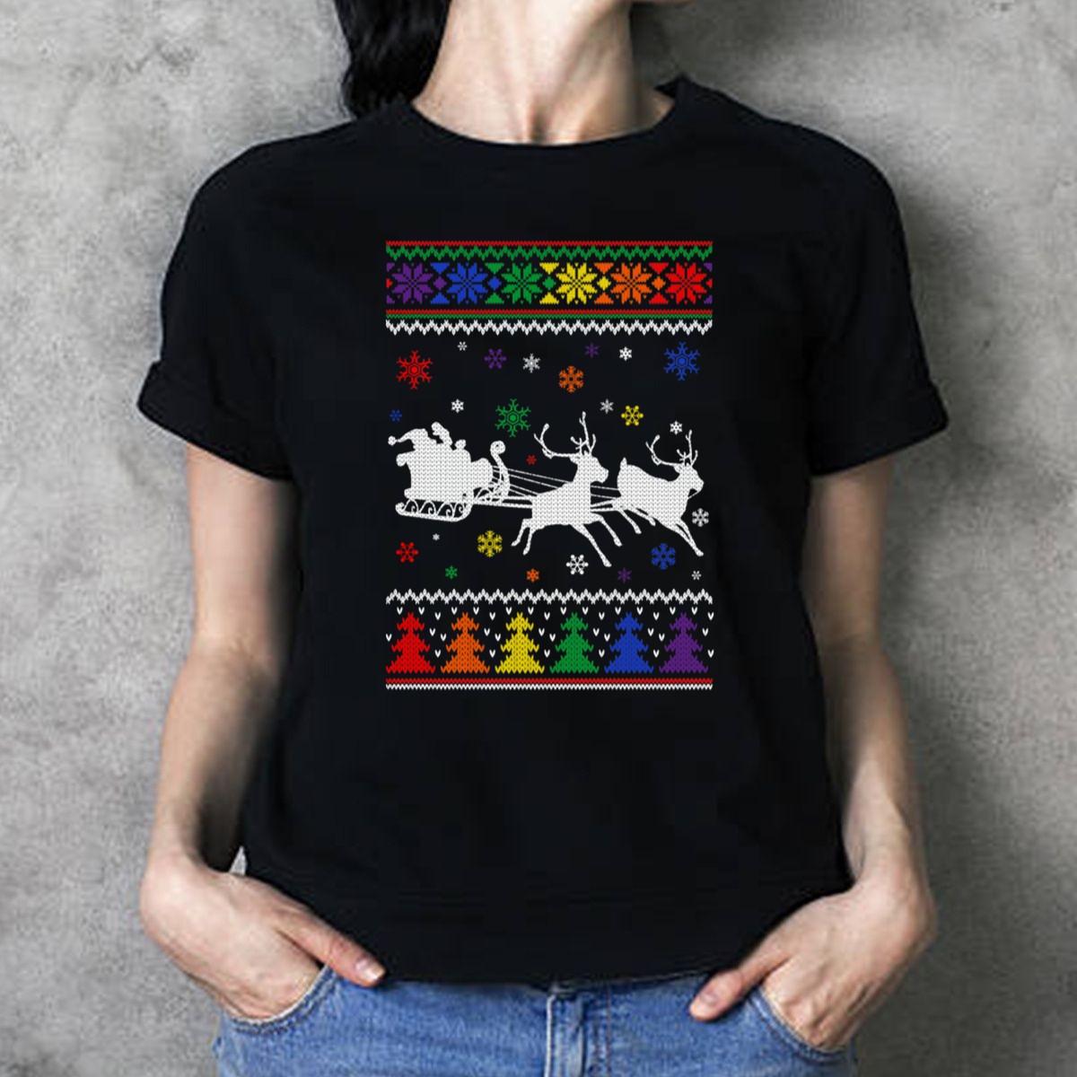 Be the first to review “Santa Sleigh Reindeer Rainbow Ugly Christmas T Shirt”