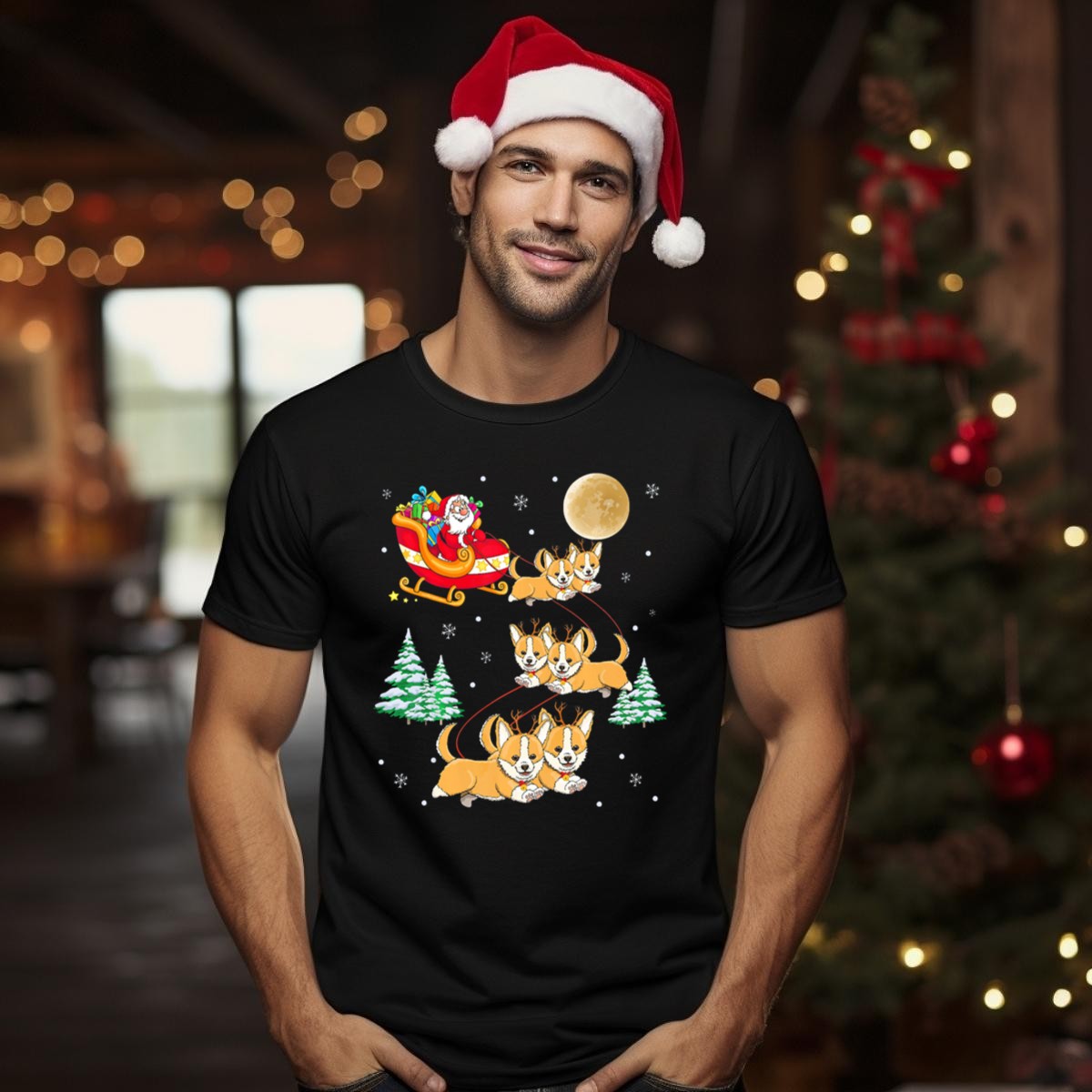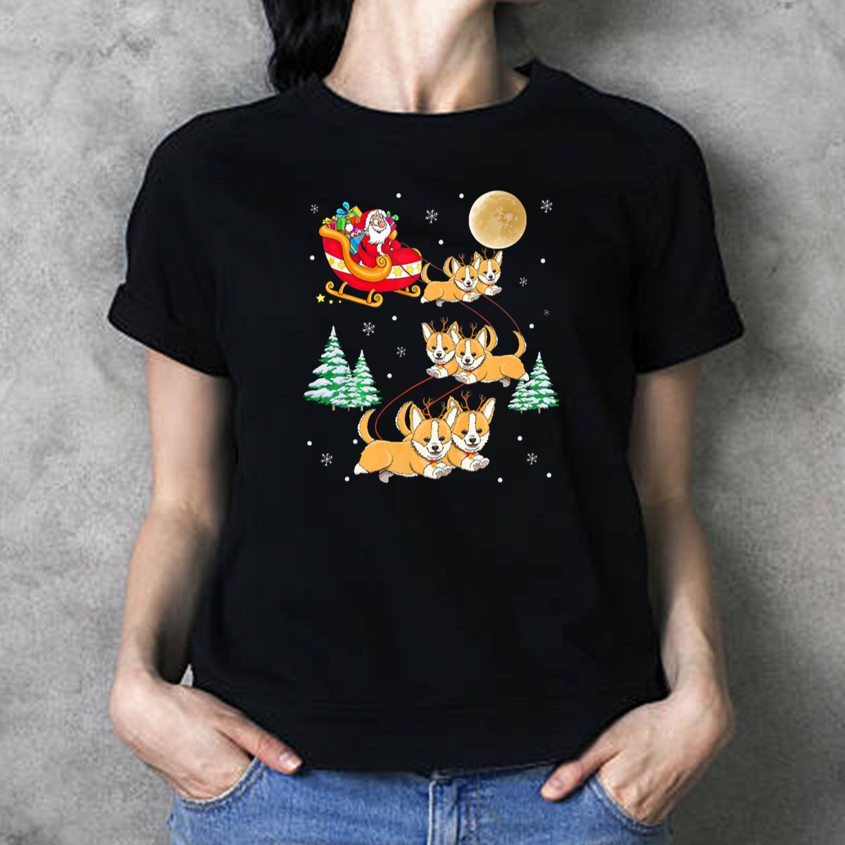 Celebrate the holiday spirit with our Santa Sleigh With Corgi Reindeer And Full Moon Christmas Scene T-Shirt! This delightful shirt is perfect for dog lovers and festive souls alike, bringing a whimsical touch to your casual wardrobe. Ideal for themed events, family gatherings, or just spreading cheer during the holiday season, this fan-made design is printed in the USA, making it a unique addition to your festivities.