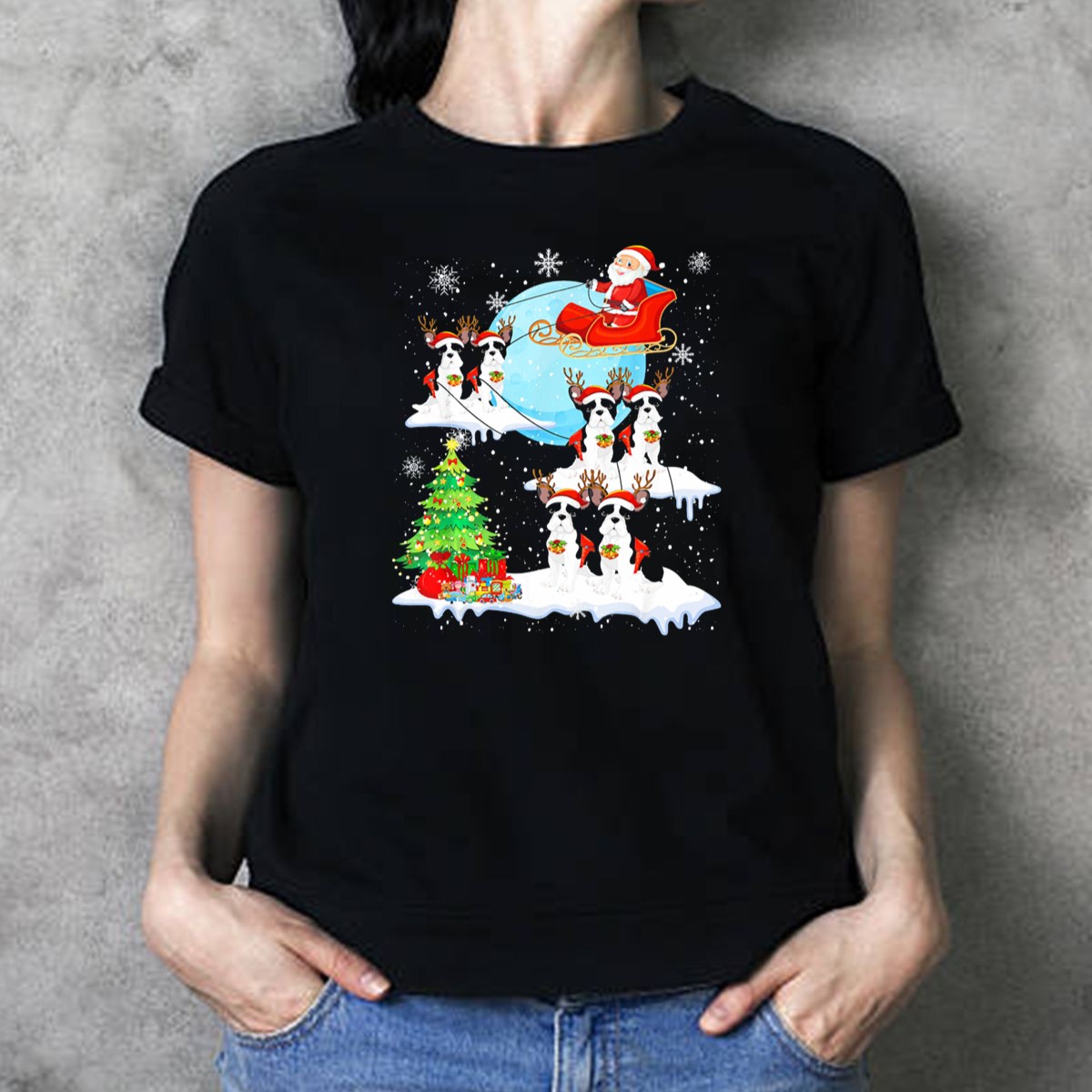 Celebrate the holiday season in style with our Santa Sleigh With French Bulldog Reindeer Christmas Scene T-Shirt! Perfect for dog lovers and festive spirits alike, this fun and unique shirt features an adorable design that showcases a playful twist on traditional Christmas themes. Ideal for casual wear, themed events, or cozy gatherings with friends and family, this fan-made shirt, printed right here in the USA, is sure to spread joy and laughter wherever you go.