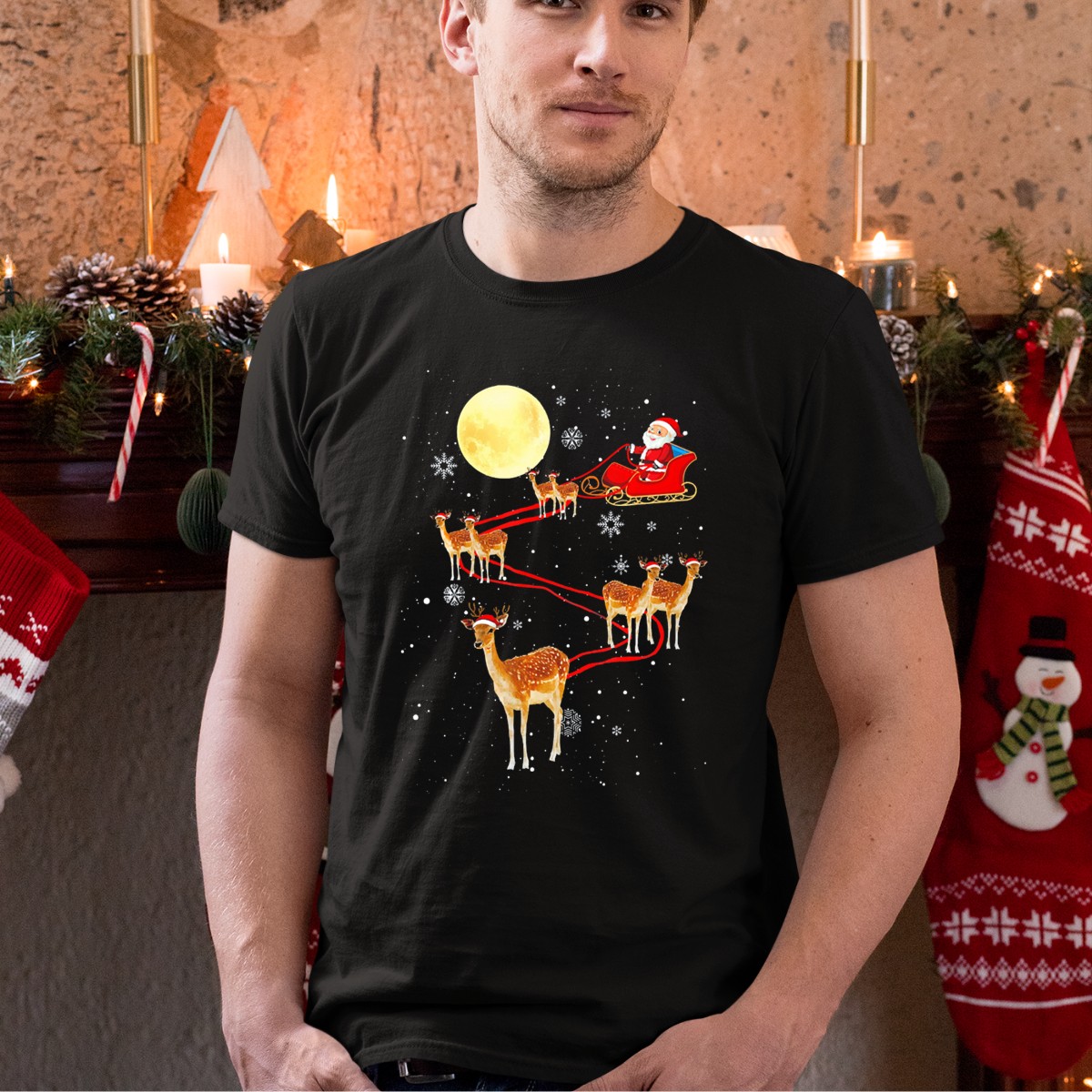 Get into the festive spirit with our Santa Sleigh With Reindeer Under Full Moon And Snowflakes Christmas Fun T-Shirt! Perfect for holiday gatherings, themed events, or just spreading cheer during the season, this shirt is designed for those who love to celebrate Christmas in style. Made with a fan-made design that captures the magic of a snowy night, you’ll not only look great but also feel comfortable in this soft and breathable tee, printed right here in the USA.