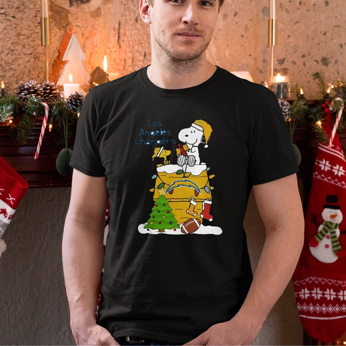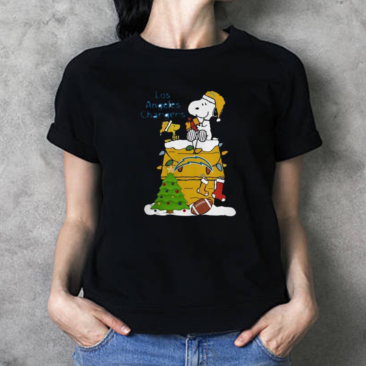 Get into the festive spirit with our Santa Snoopy Woodstock Los Angeles Chargers Christmas Tree Football T-Shirt! Perfect for fans of all ages, this shirt combines your love for football with holiday cheer, making it an ideal choice for casual wear, themed events, or just lounging around during the festive season. The fan-made design, printed in the USA, ensures you stand out while celebrating your favorite team and holiday traditions.