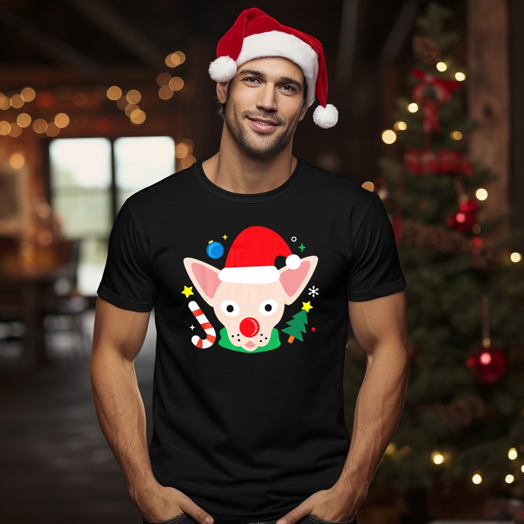 Celebrate the holiday season in style with our Santa Sphynx Cat Festive Christmas T-Shirt! Perfect for cat lovers and holiday enthusiasts alike, this delightful tee features a whimsical design of a Sphynx cat donning a Santa hat, surrounded by candy canes and snowflakes. Ideal for casual wear, themed events, or simply spreading festive cheer during your daily activities, this shirt is a fun addition to your wardrobe that showcases your unique holiday spirit. Printed in the USA, this fan-made design is sure to be a conversation starter at any gathering!