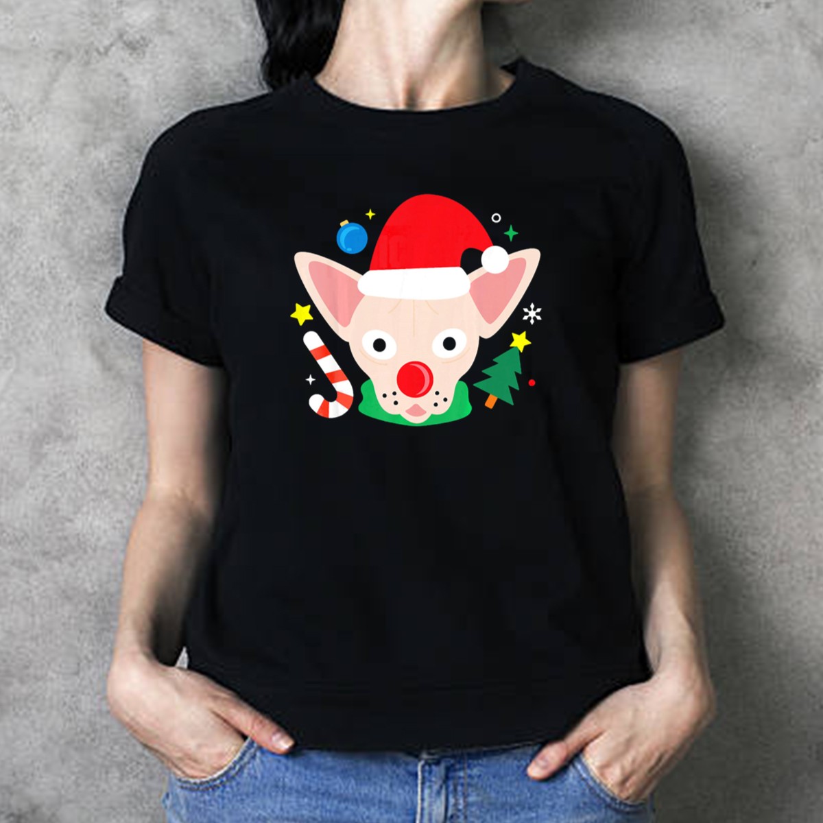 Be the first to review “Santa Sphynx Cat Festive Christmas Hat Candy Cane Tree Snowflakes T-Shirt”