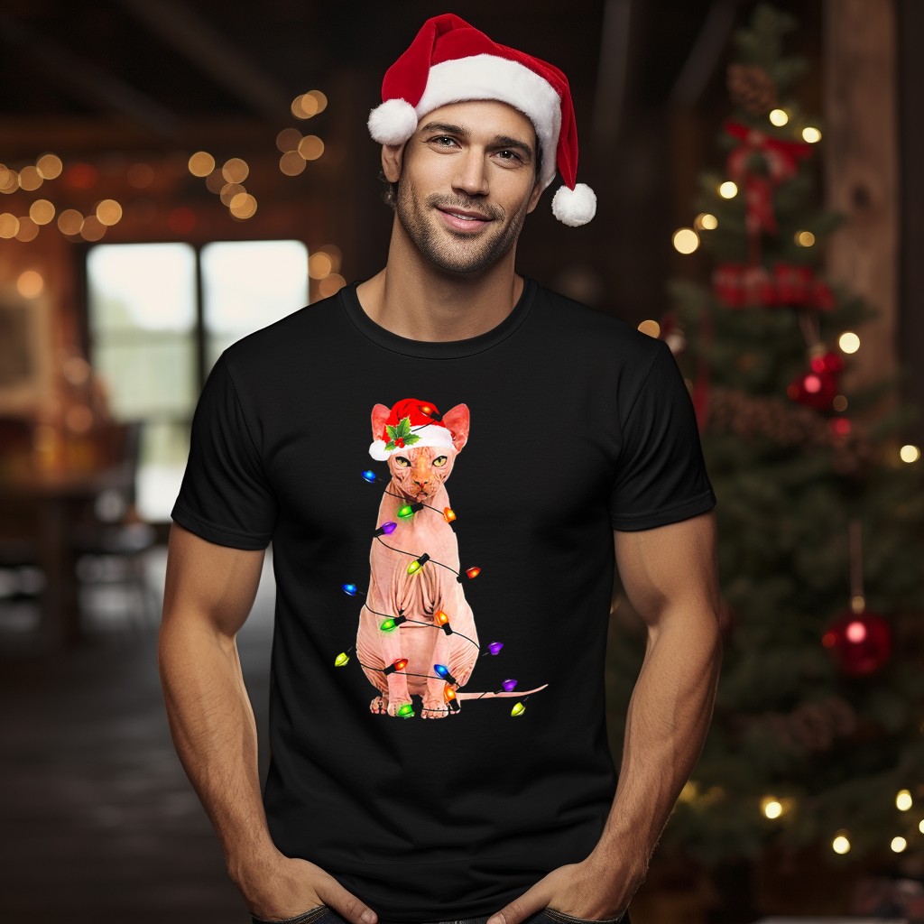 Celebrate the holiday season in style with our Santa Sphynx Cat Wrapped In Colorful Christmas Lights T-Shirt! This fun and festive tee is perfect for cat lovers and anyone looking to spread some cheer at casual gatherings, themed events, or everyday outings. The unique fan-made design features a playful Sphynx cat adorned with vibrant Christmas lights, making it a must-have for your winter wardrobe. Crafted for comfort and durability, this shirt is sure to become a favorite for all-season wear.
