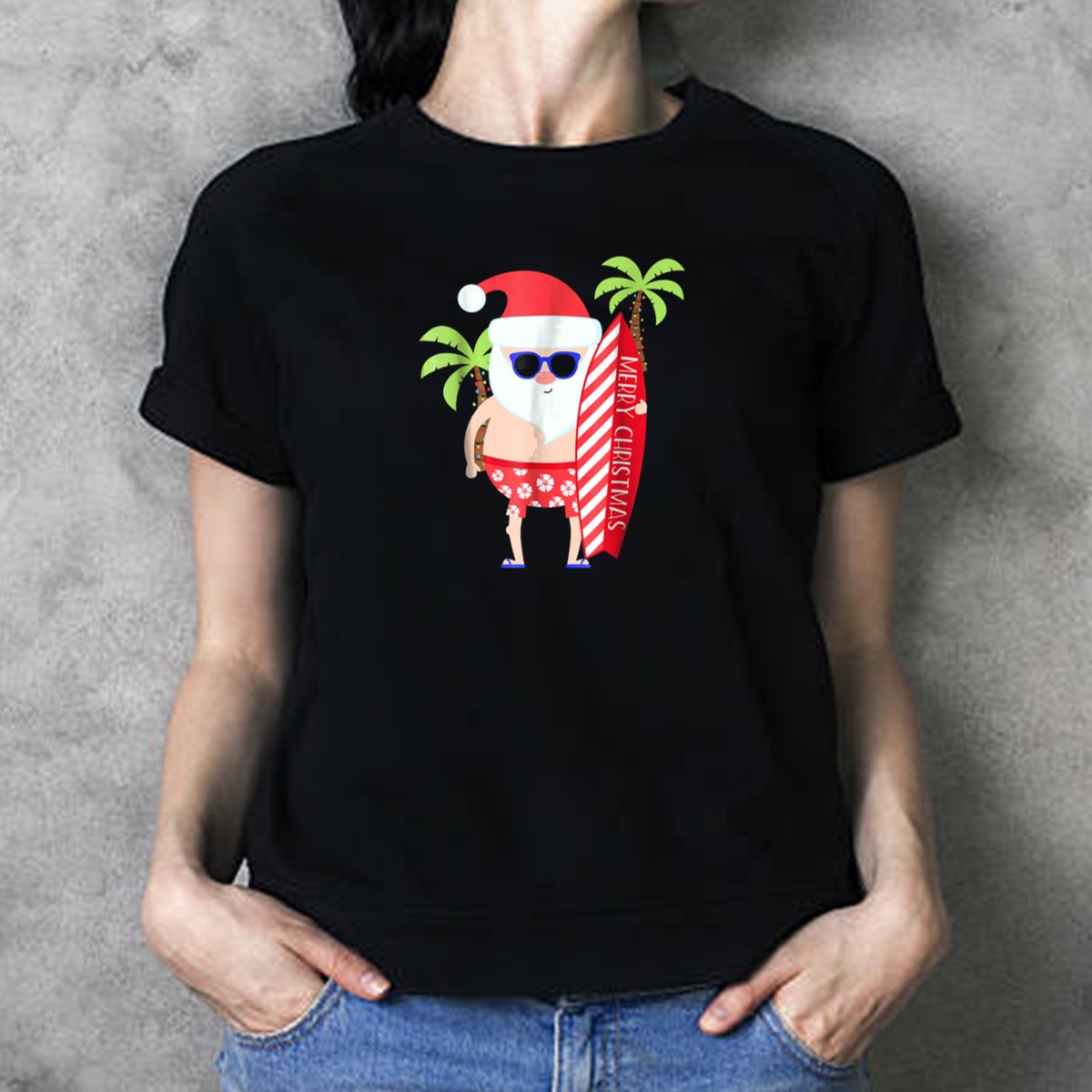 Be the first to review “Santa Surfing Merry Christmas Palms T-Shirt”