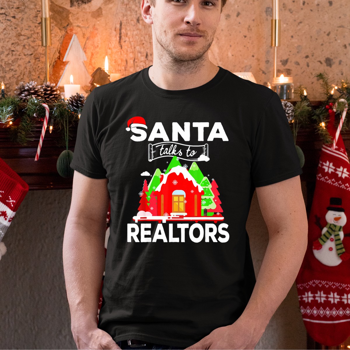 Get into the festive spirit with our Santa Talks To Realtors Christmas Holiday Humor T-Shirt! Perfect for realtors, holiday parties, or just spreading some cheer during the season, this shirt combines humor with holiday flair. The fan-made design adds a unique touch, making it a standout piece for casual wear or themed events. Crafted for comfort and style, this shirt is sure to be a favorite for all your holiday gatherings.