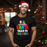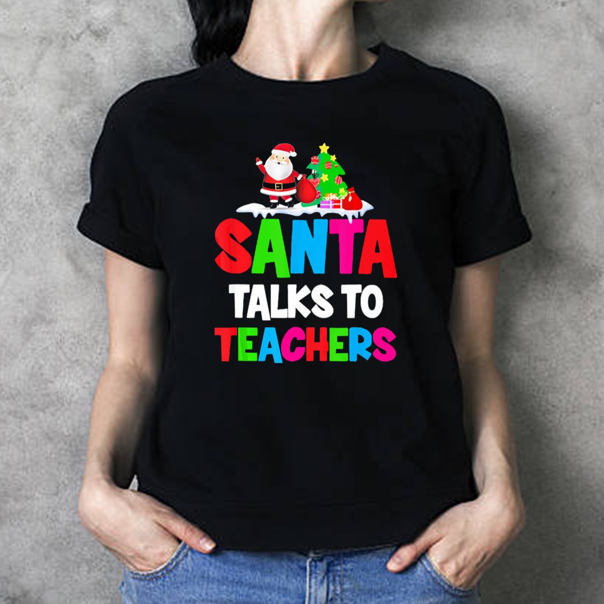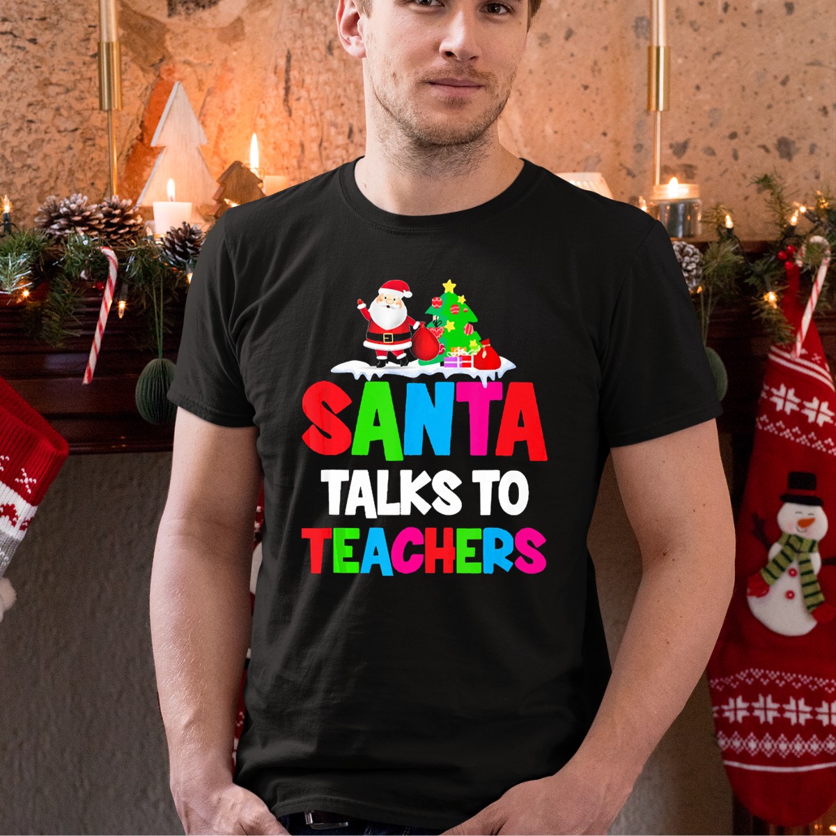 Celebrate the holiday season with our Santa Talks To Teachers Christmas Tree T-Shirt, designed for educators who bring joy and cheer to their classrooms. This fan-made design showcases a whimsical Santa Claus engaging with teachers, making it perfect for casual wear, themed events, or simply spreading festive spirit during the holidays. Crafted for comfort and style, this shirt is ideal for all-season wear, ensuring you look great while celebrating the most wonderful time of the year.