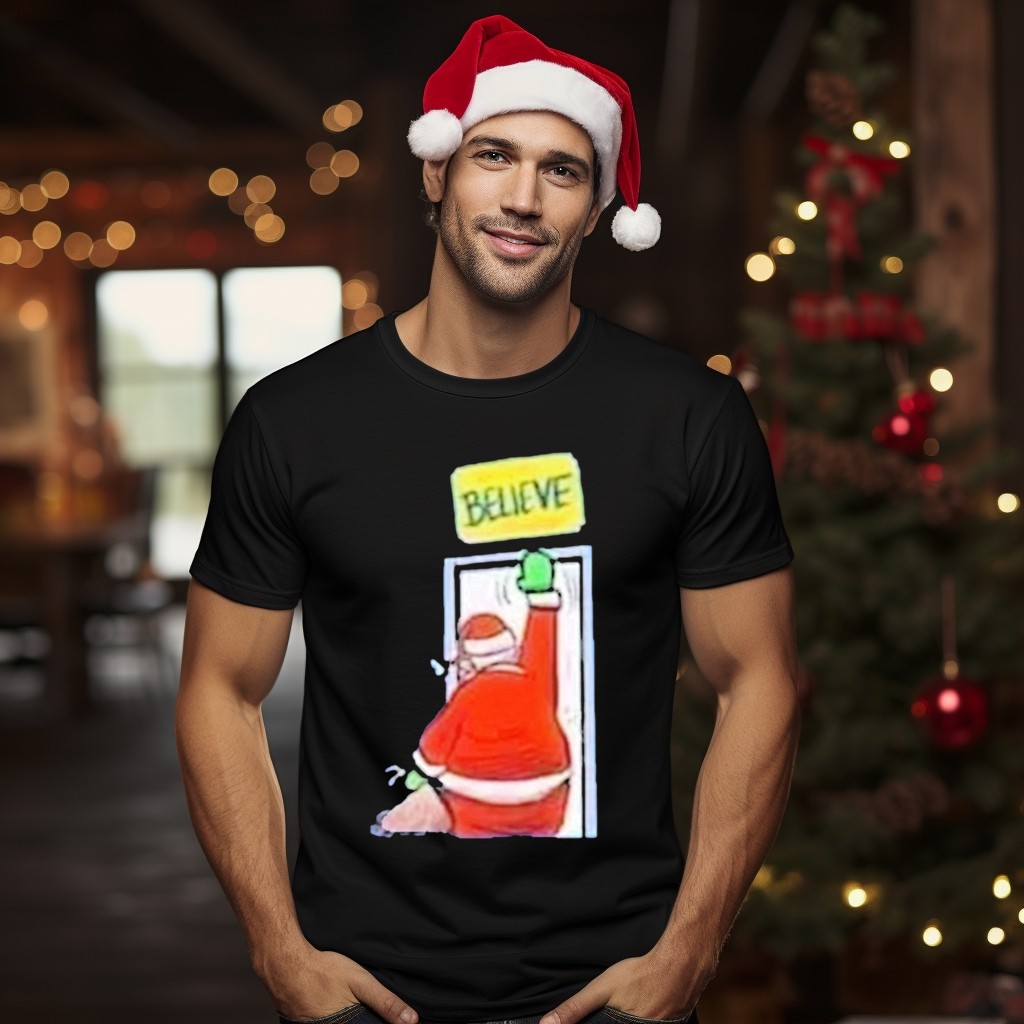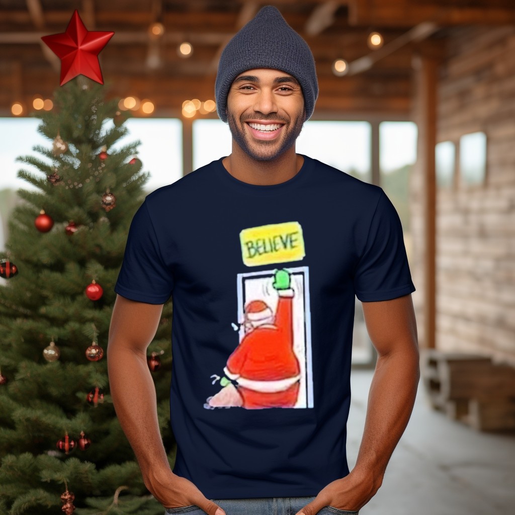Embrace the holiday spirit with our Santa Ted Lasso Believe Christmas Holiday T-Shirt! Perfect for fans of the beloved show, this graphic tee combines festive cheer with a touch of humor, making it an ideal choice for casual gatherings, themed events, or simply showing off your love for Ted Lasso during the holiday season. Made for comfort and style, this t-shirt is sure to become a favorite in your wardrobe.