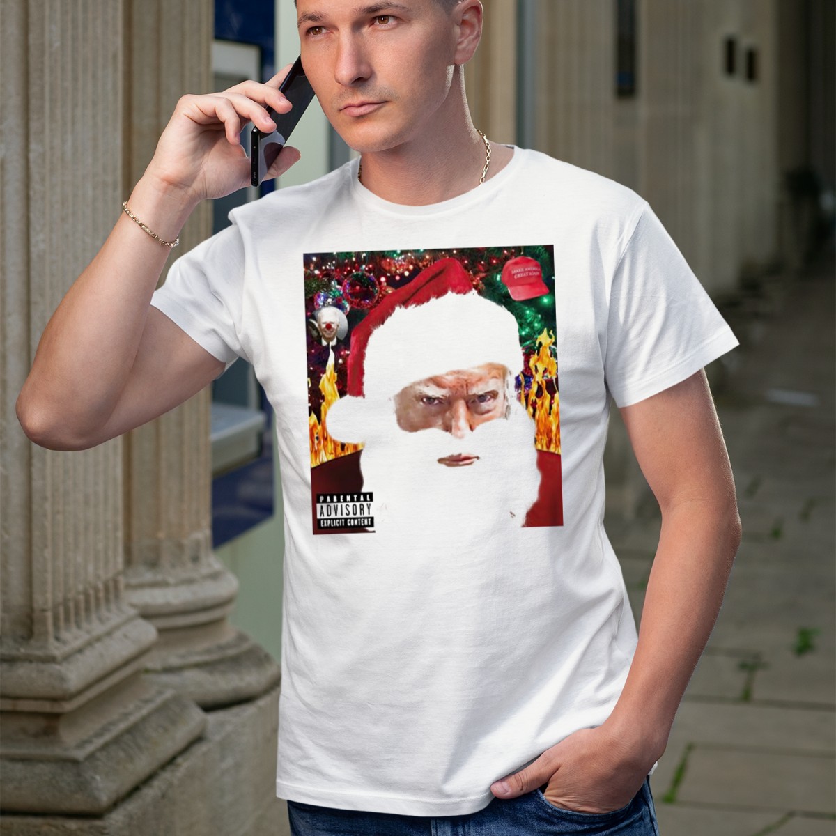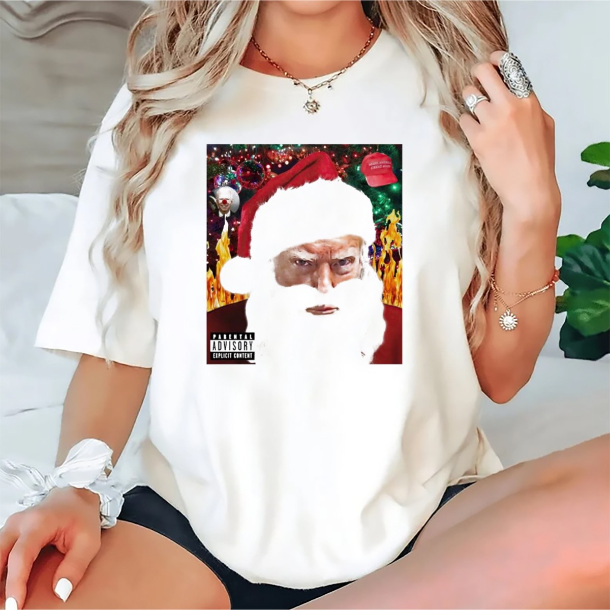 Embrace the holiday spirit with a twist of humor in our Santa Trump “Make America Great Again” Christmas T-shirt. Perfect for those who enjoy a cheeky nod to politics during the festive season, this shirt is ideal for casual gatherings, themed events, or simply making a statement while celebrating. Crafted with care and printed in the USA, this fan-made design is sure to turn heads and spark conversations at any holiday party.
