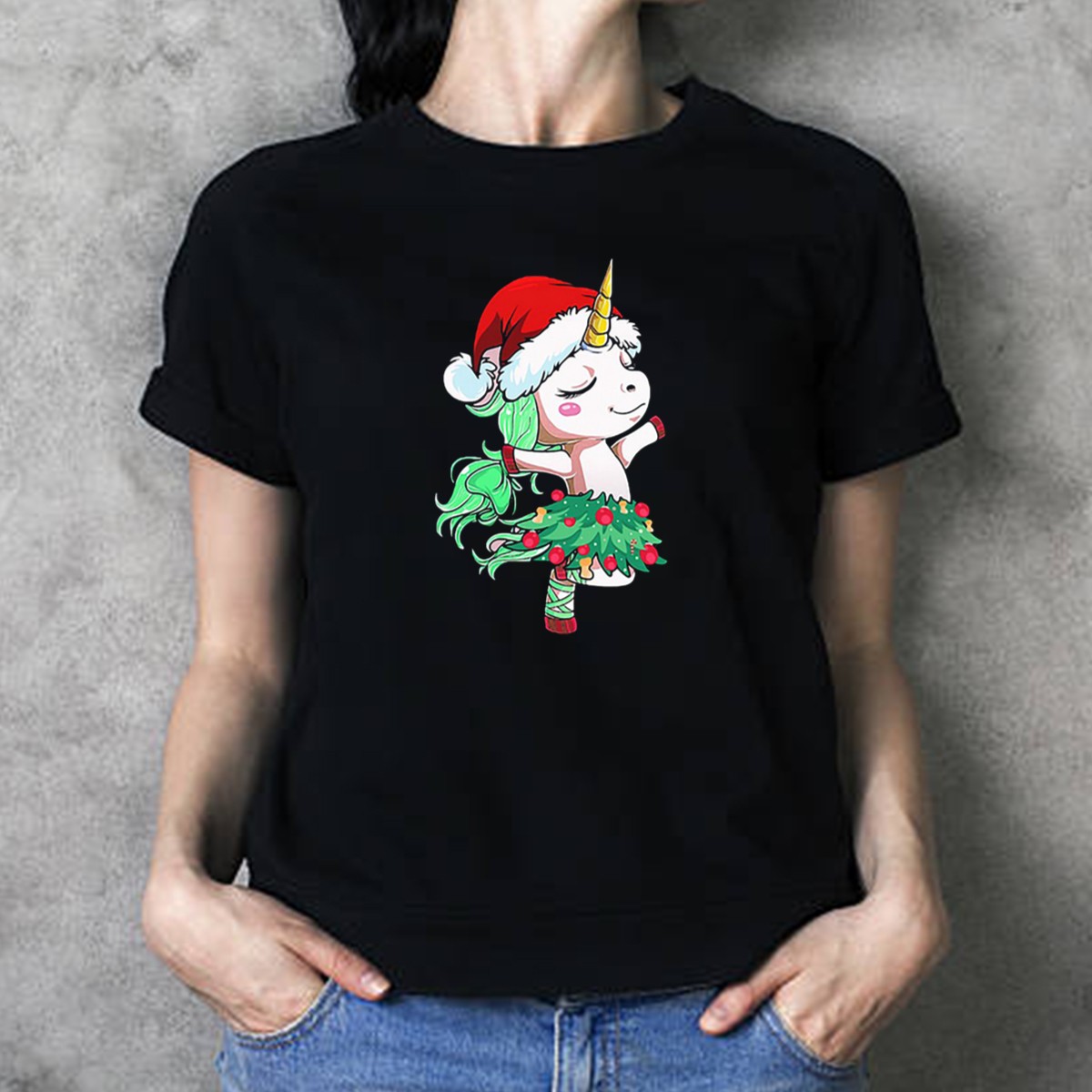 Celebrate the magic of the holiday season with our Santa Unicorn Christmas Tree Festive Dance T-Shirt! Perfect for unicorn lovers and holiday enthusiasts alike, this whimsical design brings cheer to any casual occasion, whether you’re attending a themed event, celebrating with family, or simply embracing the festive spirit in your daily wear. Made with care in the USA, this fan-made t-shirt combines comfort and creativity, making it a standout piece in your seasonal wardrobe.