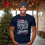 Celebrate the holiday spirit with our “Santa’s Favorite 7th Grade Teacher” T-shirt, perfect for educators who bring joy and creativity to the classroom. This fan-made design features a charming apple and arrow motif adorned with festive stars, making it an ideal choice for casual wear during Christmas events or daily teaching activities. Crafted for comfort and style, this shirt is a delightful way to show appreciation for teachers while spreading holiday cheer!