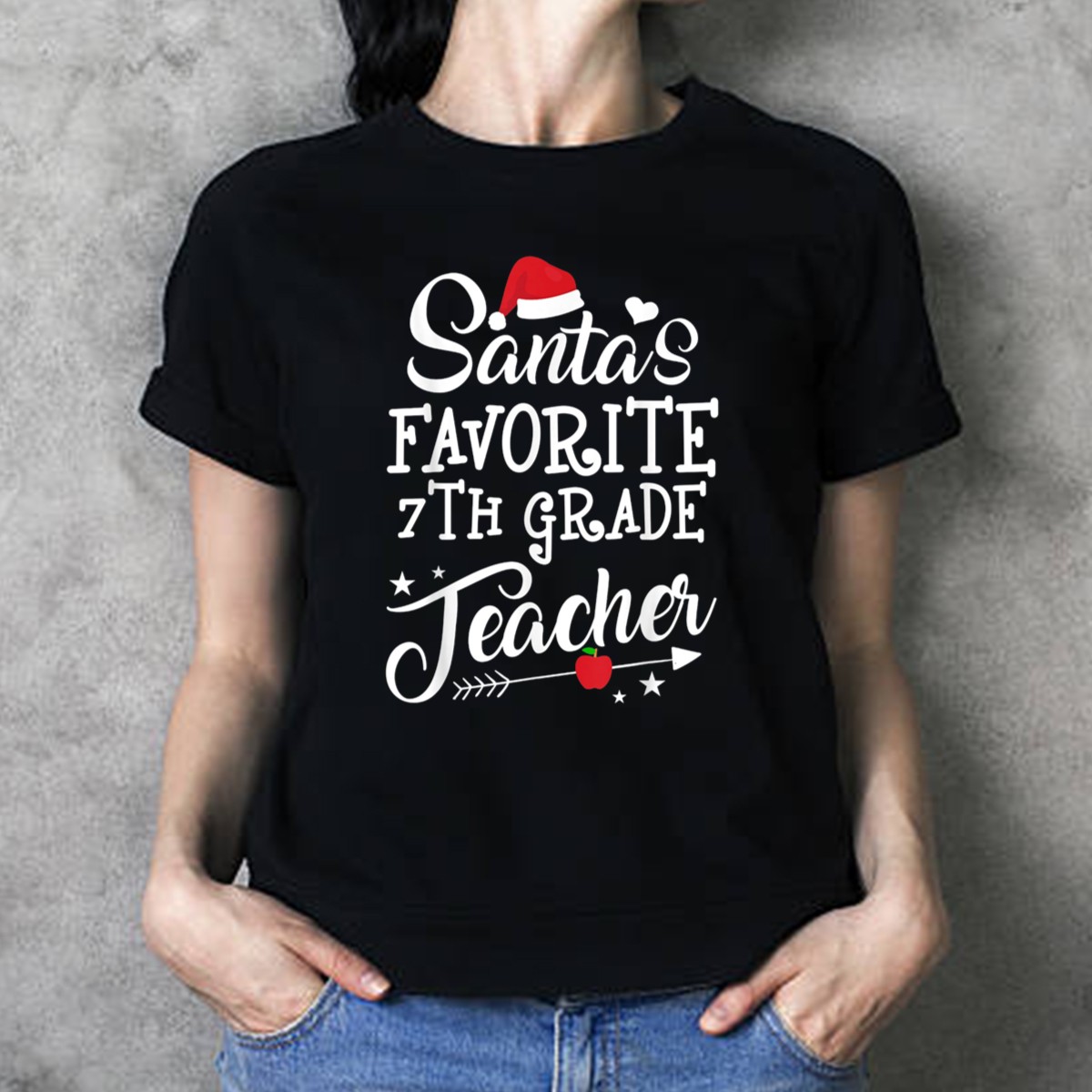 Be the first to review “Santa’S Favorite 7Th Grade Teacher Christmas Apple Arrow Hat Stars T-Shirt”