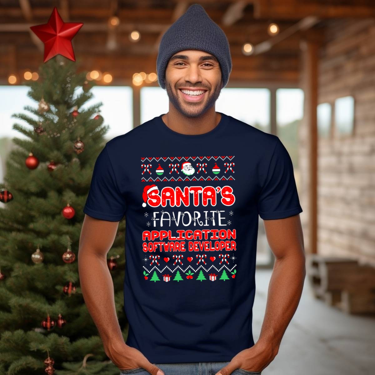 Celebrate the holiday spirit with our “Santa’s Favorite Application Software Developer” T-shirt, perfect for tech enthusiasts and software developers who love a festive twist! This fun and unique design is ideal for casual wear, themed events, or simply spreading joy during the Christmas season. Crafted for comfort and style, this shirt is a must-have addition to your holiday wardrobe, making it an excellent gift for yourself or the developer in your life.