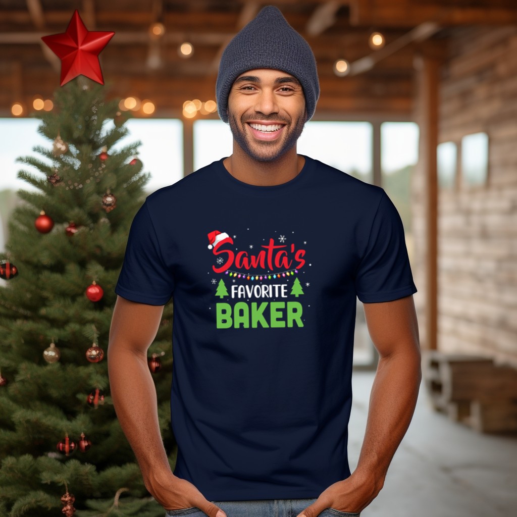 Celebrate the festive season with our Santa’s Favorite Baker Christmas Lights and Trees T-Shirt! This charming design is perfect for passionate bakers and holiday enthusiasts alike, bringing a touch of joy and whimsy to your casual wear. Whether you’re baking cookies for a holiday gathering, attending themed events, or simply enjoying daily activities, this shirt is a delightful way to express your love for the season. Made in the USA, this fan-made design is sure to make you the center of attention at any holiday celebration!