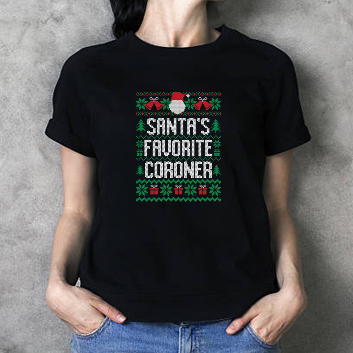 Celebrate the holiday season with a touch of humor in our Santa’s Favorite Coroner Ugly Christmas Sweater Pattern T-Shirt! This fun and quirky design is perfect for those who love to stand out at themed events, casual gatherings, or simply while going about their daily routine. Made for fans who appreciate a blend of festive cheer and playful wit, this shirt is not just a piece of clothing—it’s a conversation starter. Show off your unique style and celebrate the season in comfort!