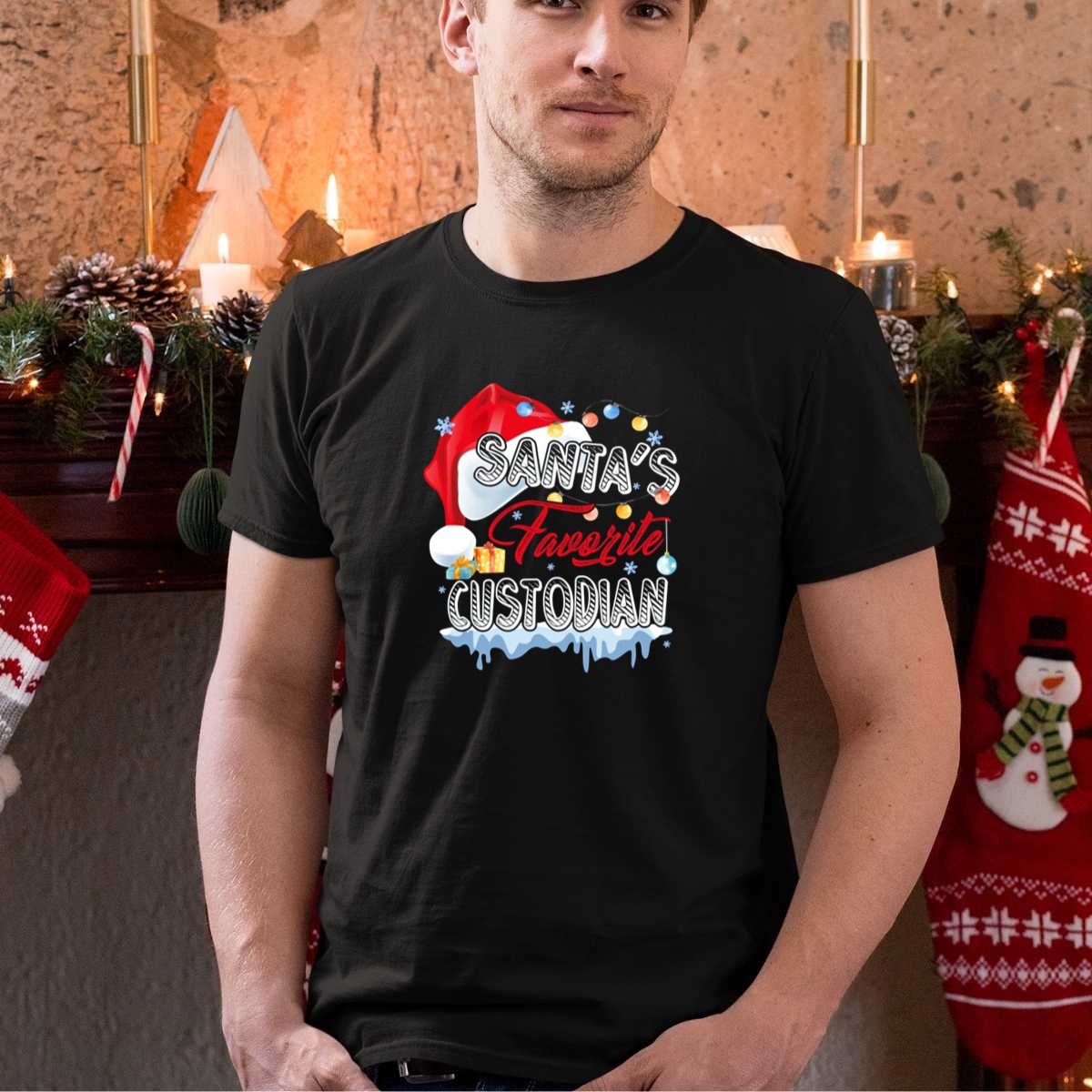 Be the first to review “Santas Favorite Custodian Funny Christmas Xmas Cel Santa Hat Lights Gifts Snowflakes T-Shirt”