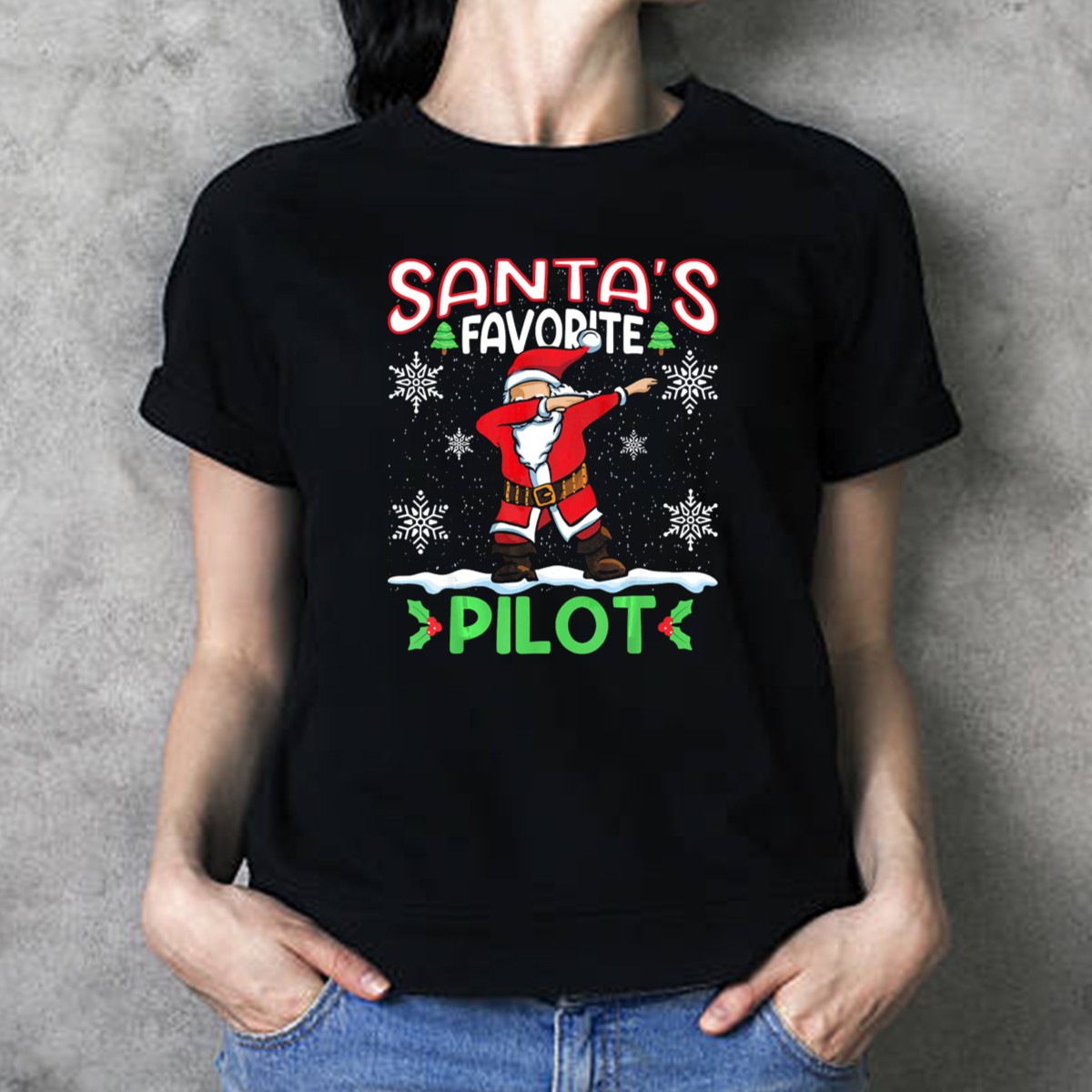 Celebrate the holiday season with our Santa’s Favorite Dab Pilot Christmas Snowflakes T-Shirt! This fun and festive tee is perfect for anyone looking to add a touch of humor to their holiday wardrobe. Ideal for casual wear, themed events, or daily outings during the winter months, this shirt is a must-have for anyone who loves to spread cheer while staying stylish. Featuring a unique fan-made design printed in the USA, it’s sure to be a conversation starter at any holiday gathering!