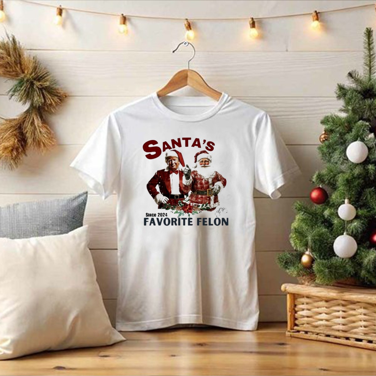 Celebrate the holiday season with a twist in our “Santa’s Favorite Felon Since 2024” T-shirt, featuring a playful design that makes it perfect for fans of unique festive wear. This shirt is ideal for holiday parties, themed events, or simply showcasing your sense of humor during casual outings. Made for comfort and style, it combines a fun graphic with a classic fit, ensuring you’ll stand out while feeling great!