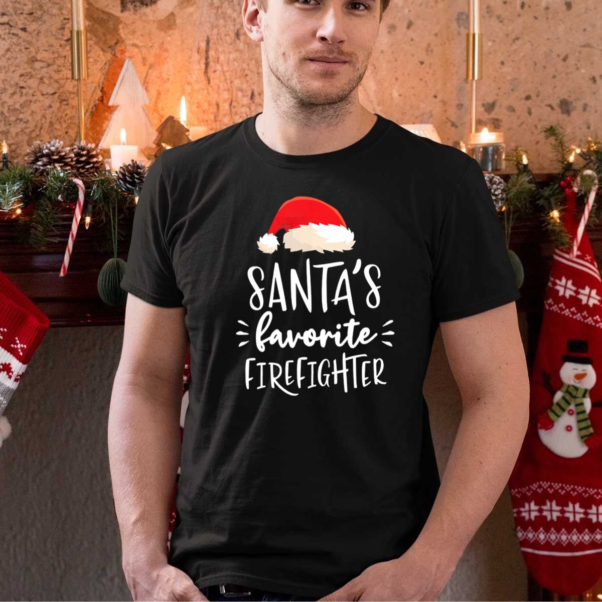 Be the first to review “Santas Favorite Firefighter Christmas Santa Hat T Shirt”
