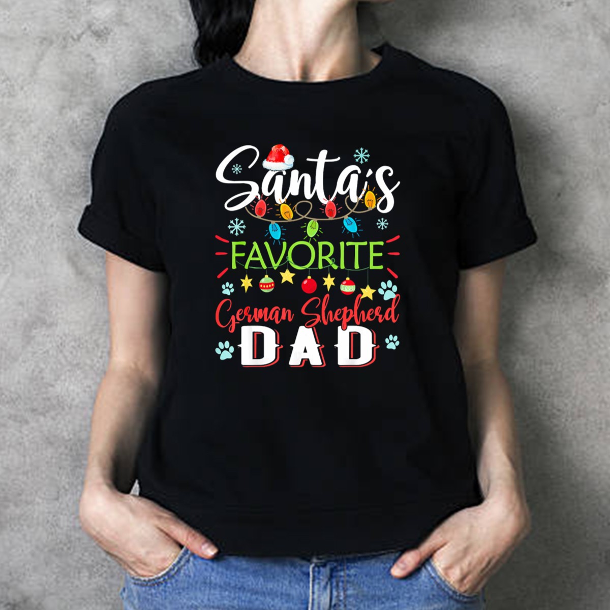 Celebrate the holiday season with our “Santa’s Favorite German Shepherd Dad” T-shirt, a must-have for proud dog dads who love to showcase their festive spirit! Perfect for casual outings, themed events, or simply lounging at home, this fan-made design features cheerful Christmas lights and adorable paw prints that will surely bring joy to everyone around. Made in the USA, this shirt combines comfort with a playful twist, making it a unique addition to your holiday wardrobe.