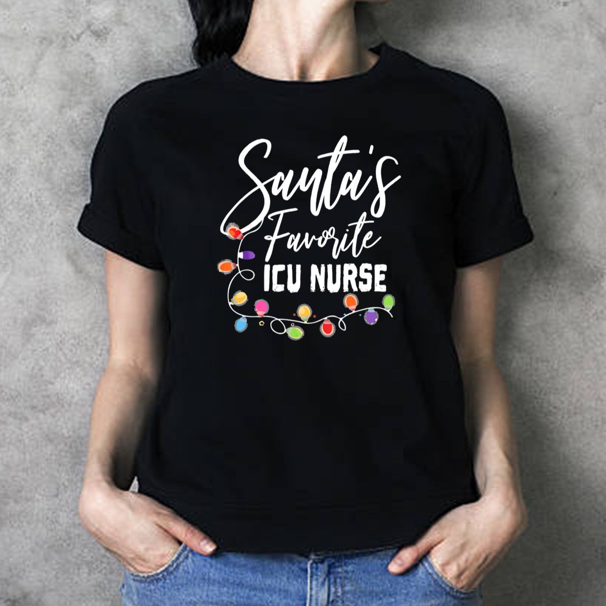 Be the first to review “Santas Favorite Icu Nurse With Colorful Christmas Lights T-Shirt”