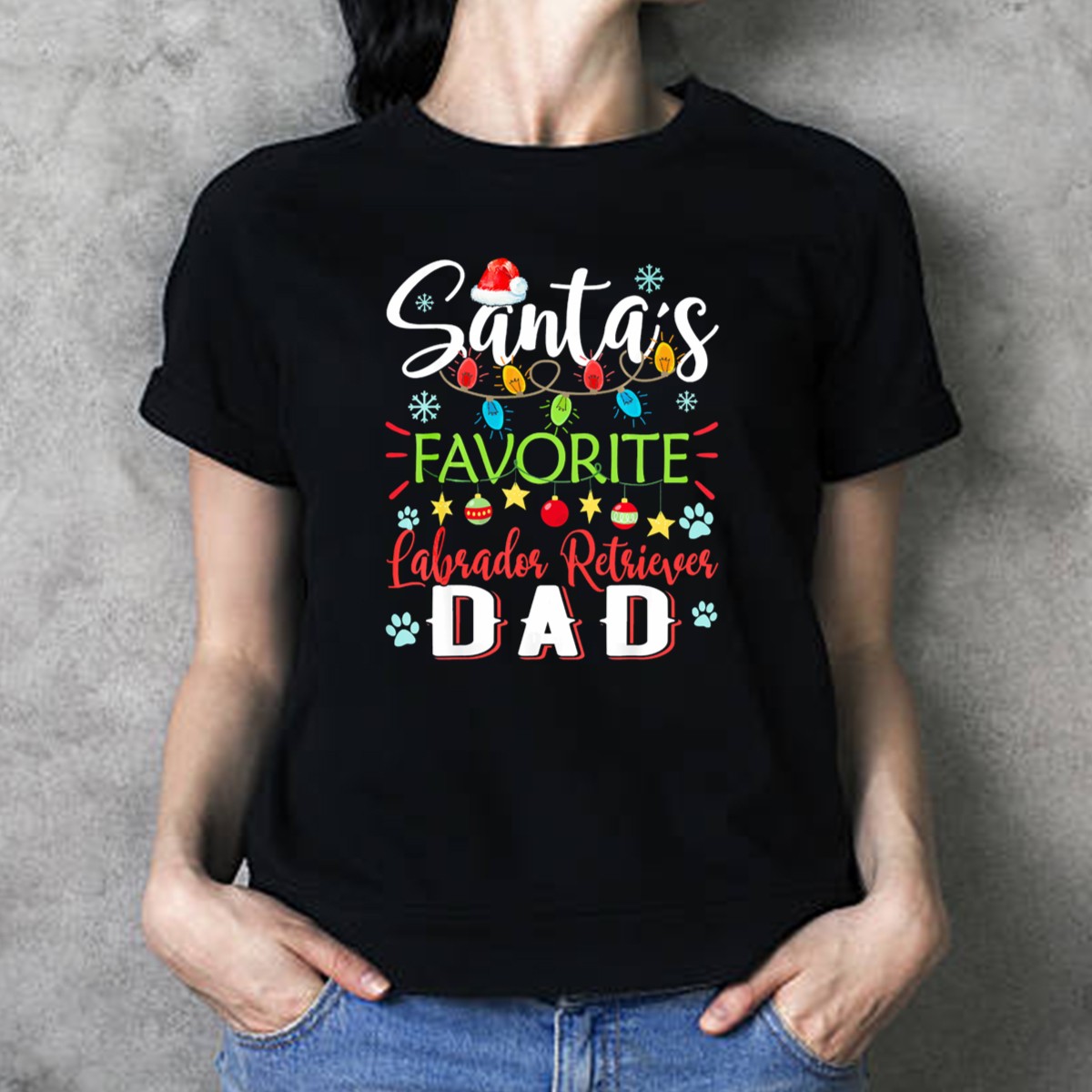 Be the first to review “Santa’S Favorite Labrador Retriever Dad Christmas Lights And Paw Prints T-Shirt”