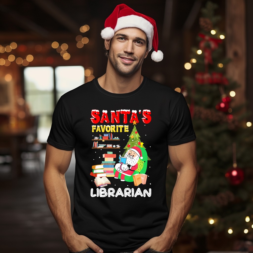Celebrate the holiday season with a delightful twist on festive apparel! Our “Santa’s Favorite Librarian” T-shirt is perfect for book lovers and library enthusiasts alike. This charming design features Santa enjoying a cozy reading moment surrounded by books and a beautifully decorated tree, making it an ideal choice for casual wear, themed events, or simply spreading cheer during the holidays. Crafted for comfort and style, this shirt is not just a piece of clothing; it’s a statement of your love for reading and the joy of the season!