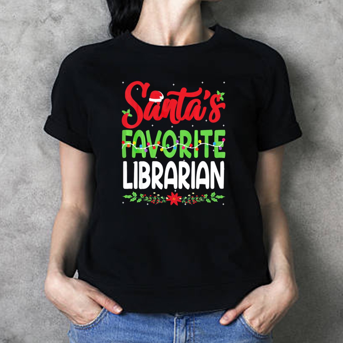 Celebrate the holiday season with our Santa’s Favorite Librarian Christmas T-Shirt, perfect for book lovers and library enthusiasts alike! This fan-made design features festive Santa hats and holly lights, making it an ideal choice for casual wear, themed events, or just spreading some holiday cheer during your daily activities. Made with care in the USA, this shirt combines comfort with a playful spirit, ensuring you stand out wherever you go!