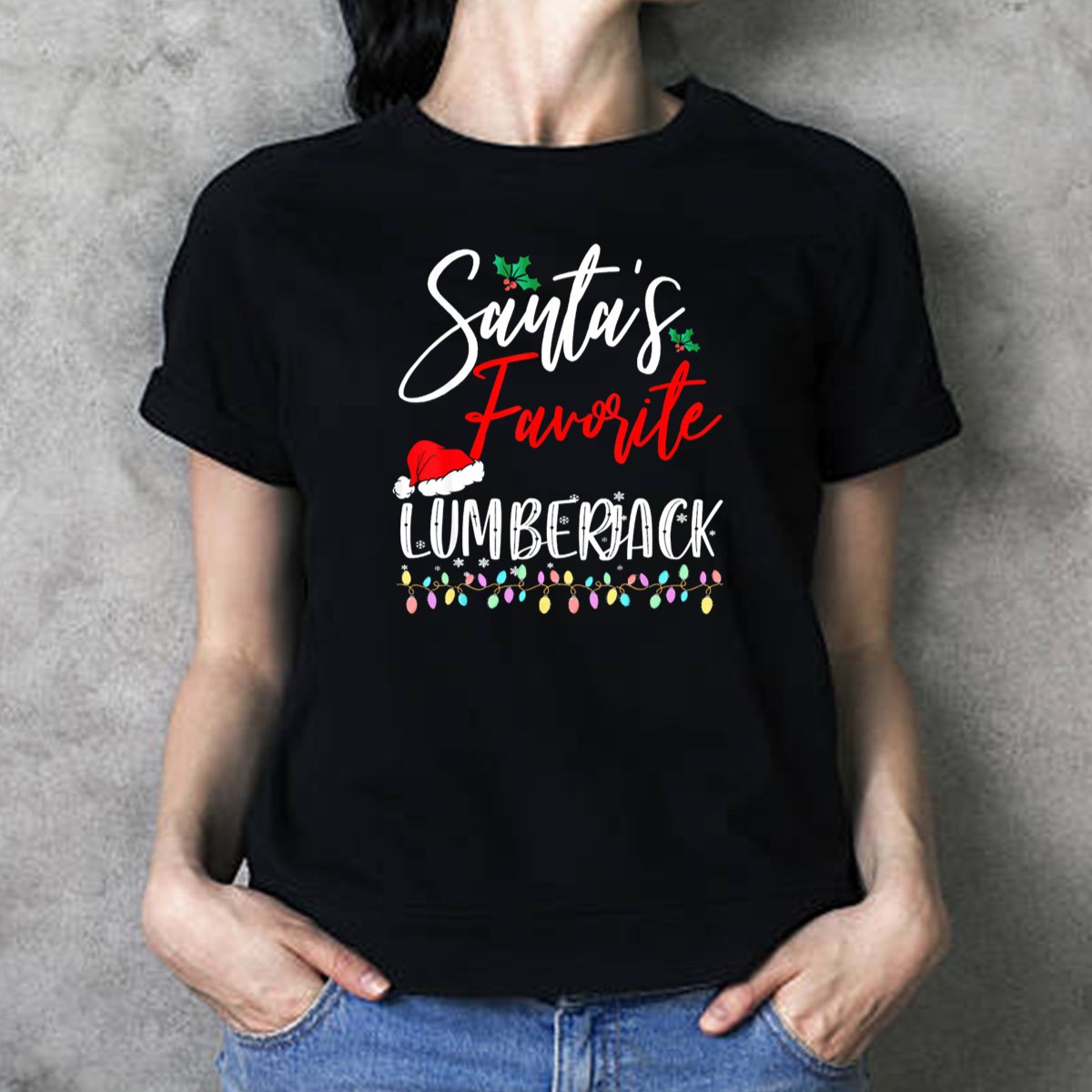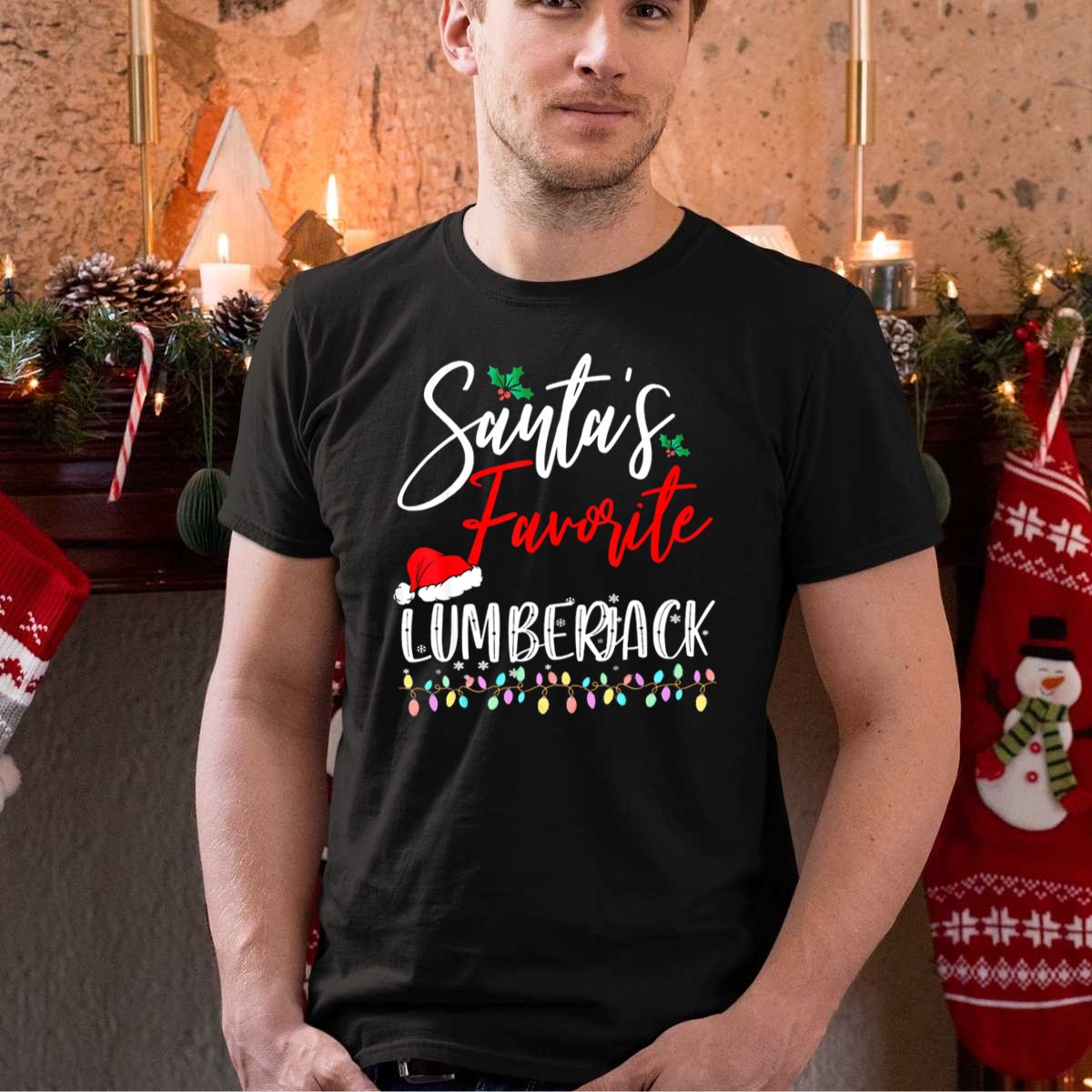 Be the first to review “Santas Favorite Lumberjack Christmas Holiday Lights Santa Hat T Shirt”