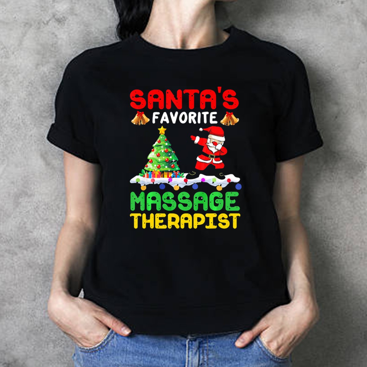 Celebrate the holiday spirit with our “Santa’s Favorite Massage Therapist” T-shirt, perfect for those who spread joy through relaxation! This fan-made design features a playful Christmas tree and dancing Santa bells, making it an ideal choice for casual wear, themed events, or just lounging around during the festive season. Crafted for comfort and style, this shirt is a must-have for anyone who loves to combine holiday cheer with a bit of humor.