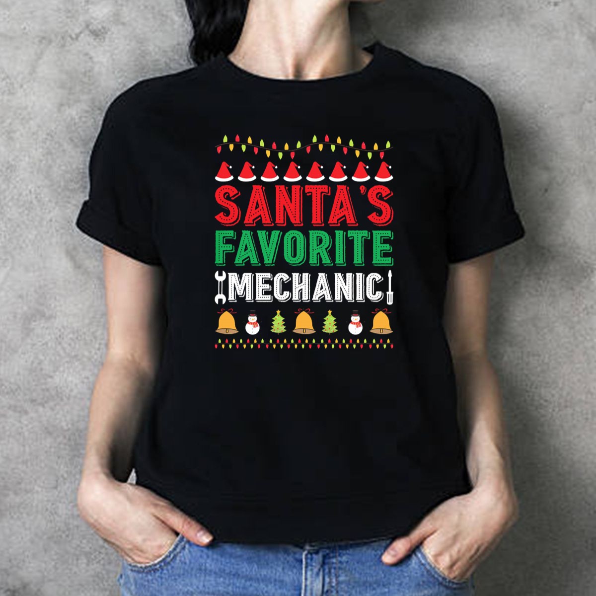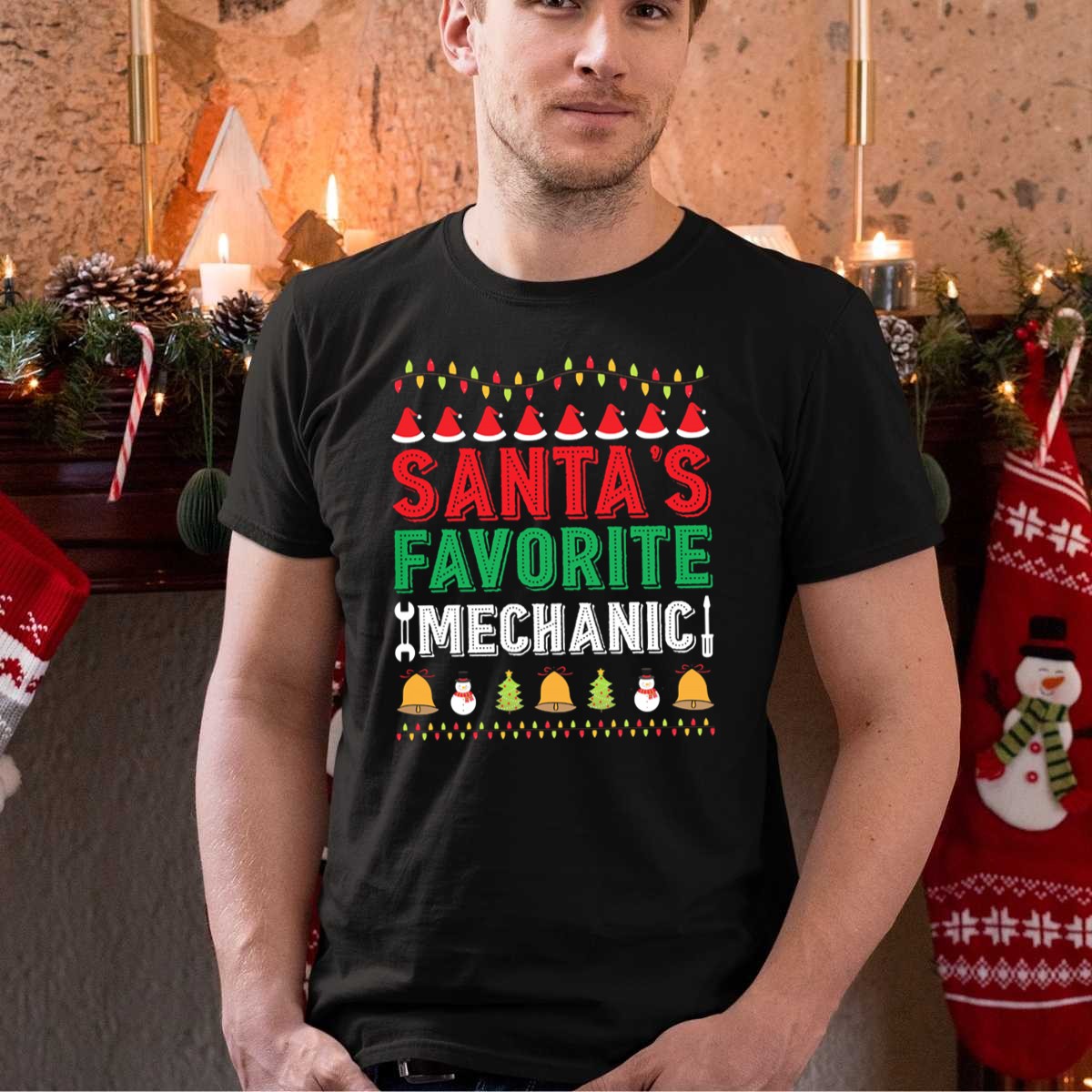 Get into the holiday spirit with our “Santa’s Favorite Mechanic” graphic T-shirt, perfect for the festive mechanic in your life! This fun and playful design features cheerful Santa hats, wrenches, bells, snowmen, and Christmas trees, making it an excellent choice for casual wear, themed events, or daily festivities. Made for comfort and style, this shirt is a unique gift that showcases your love for both mechanics and the holiday season.