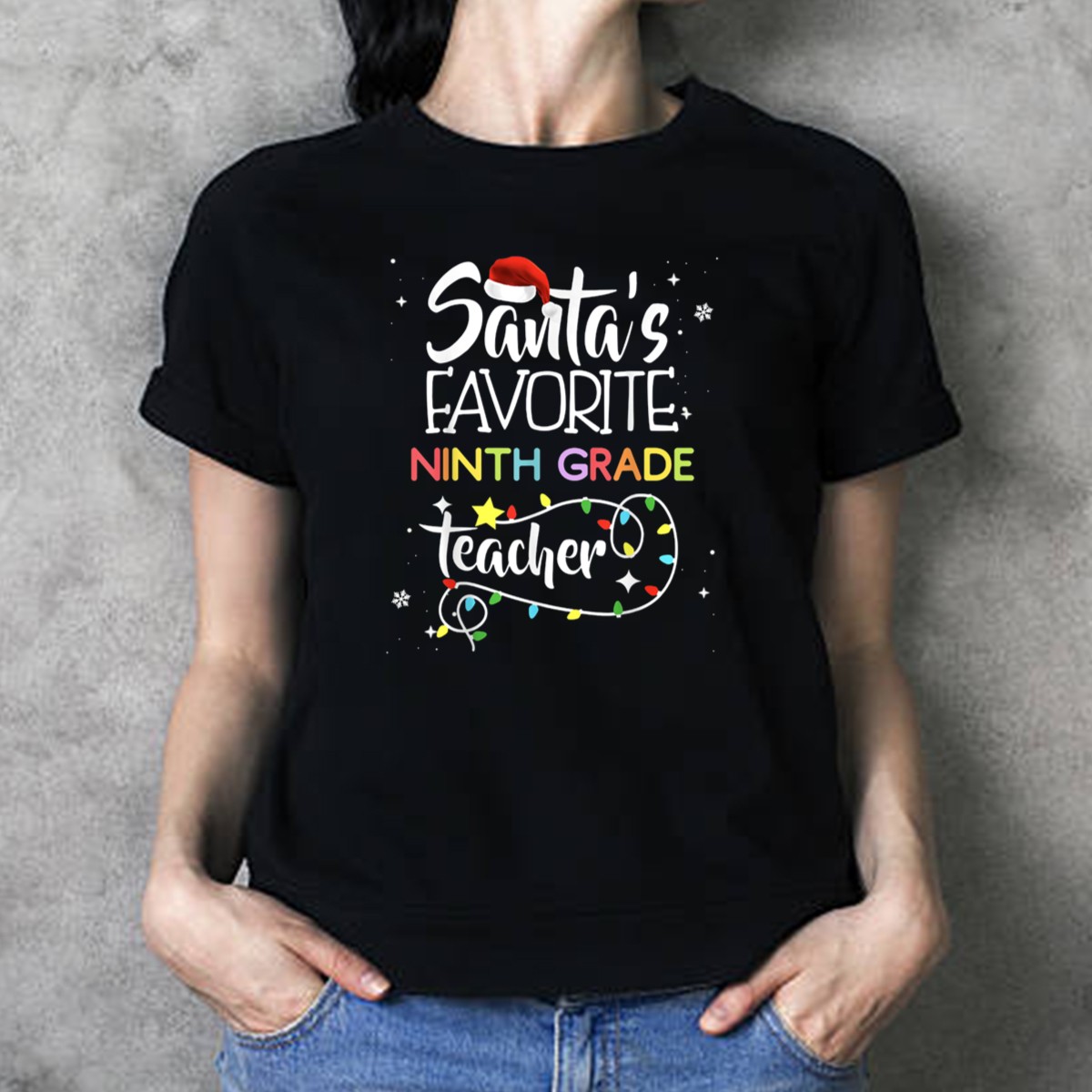 Celebrate the holiday spirit with our Santa’s Favorite Ninth Grade Teacher Christmas Lights Snowflakes T-Shirt! This fun and festive tee is perfect for educators who want to bring some cheer into the classroom or for holiday gatherings. Made with a unique fan-made design printed in the USA, it combines comfort and style, making it an ideal choice for casual wear during the festive season and beyond.