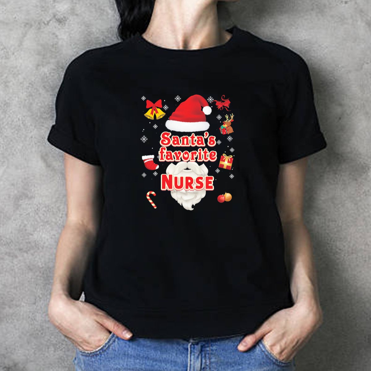 Celebrate the festive season with our “Santa’s Favorite Nurse” T-shirt, designed especially for the dedicated healthcare heroes who bring joy and care to others. This graphic tee features an adorable design complete with a Santa hat, reindeer, and snowflakes, making it perfect for holiday parties, themed events, or simply spreading cheer during your daily rounds. Crafted for comfort and style, this shirt is a must-have for nurses who want to showcase their holiday spirit while staying cozy and fashionable.