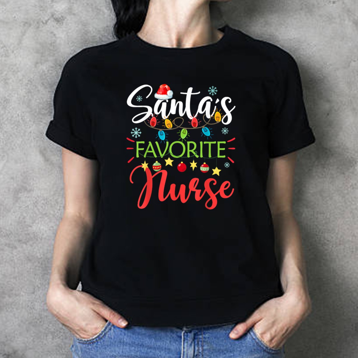 Celebrate the holiday season with our Santa’s Favorite Nurse T-Shirt, a perfect blend of festive cheer and professional pride! Designed for nurses who spread joy and care, this shirt showcases a playful theme featuring Christmas lights, snowflakes, and a cheerful Santa hat. Ideal for casual wear, themed events, or just daily outings, this fan-made design printed in the USA adds a touch of holiday spirit to your wardrobe.