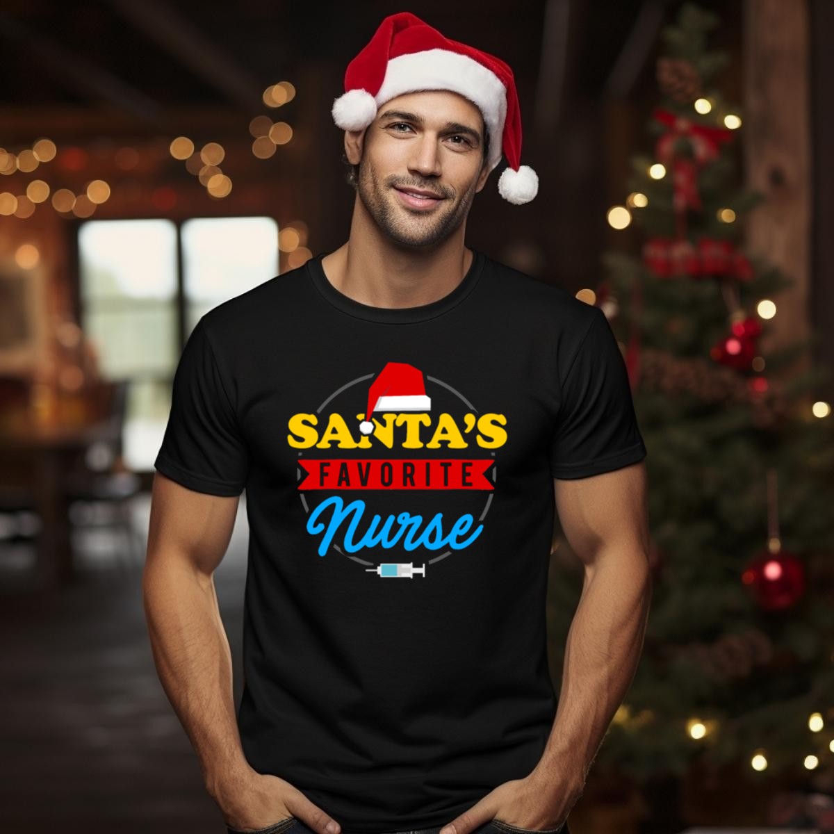 Celebrate the holiday spirit with our Santa’s Favorite Nurse Christmas Syringe Santa Hat T-Shirt, the perfect blend of festive fun and professional pride! This fan-made design is ideal for nurses and healthcare workers looking to spread cheer during the holiday season. Whether you’re at a themed event, casual gatherings, or just running daily errands, this shirt will make you the star of the show while showcasing your dedication to caring for others. Printed in the USA, it promises quality and comfort for all your seasonal celebrations.
