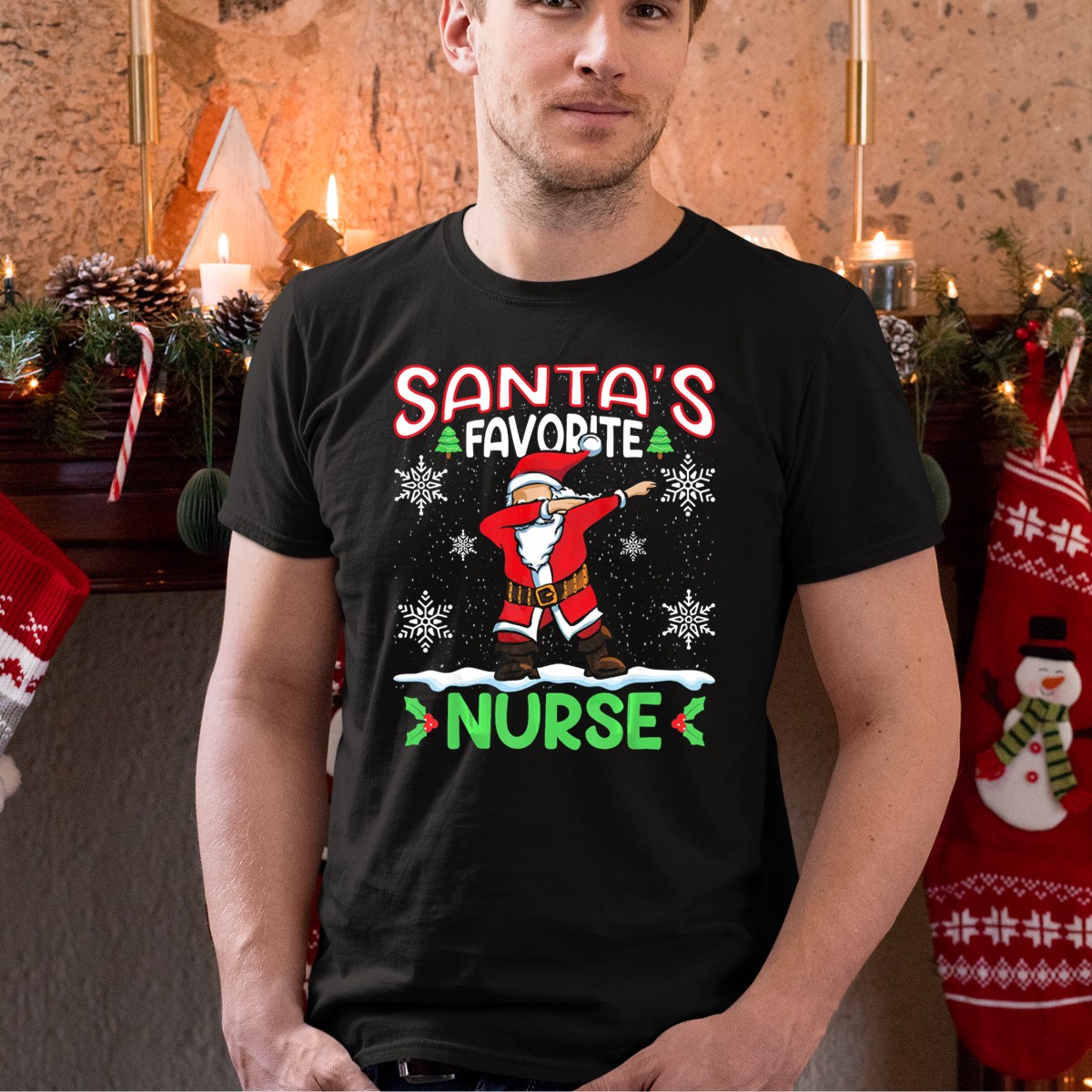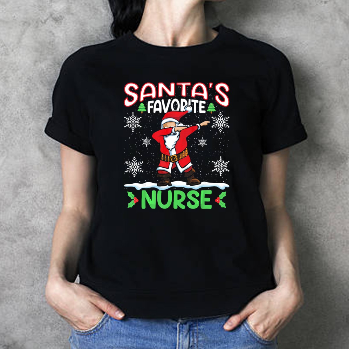 Celebrate the festive season with our “Santa’s Favorite Nurse Dab Christmas Snowflakes T-Shirt,” designed for those who bring joy and care to others. Perfect for nurses, healthcare professionals, or anyone who wants to spread holiday cheer, this shirt is ideal for casual wear, themed events, or daily outings during the holiday season. With its unique fan-made design printed in the USA, it’s a fun way to show pride in your profession while embracing the spirit of Christmas.