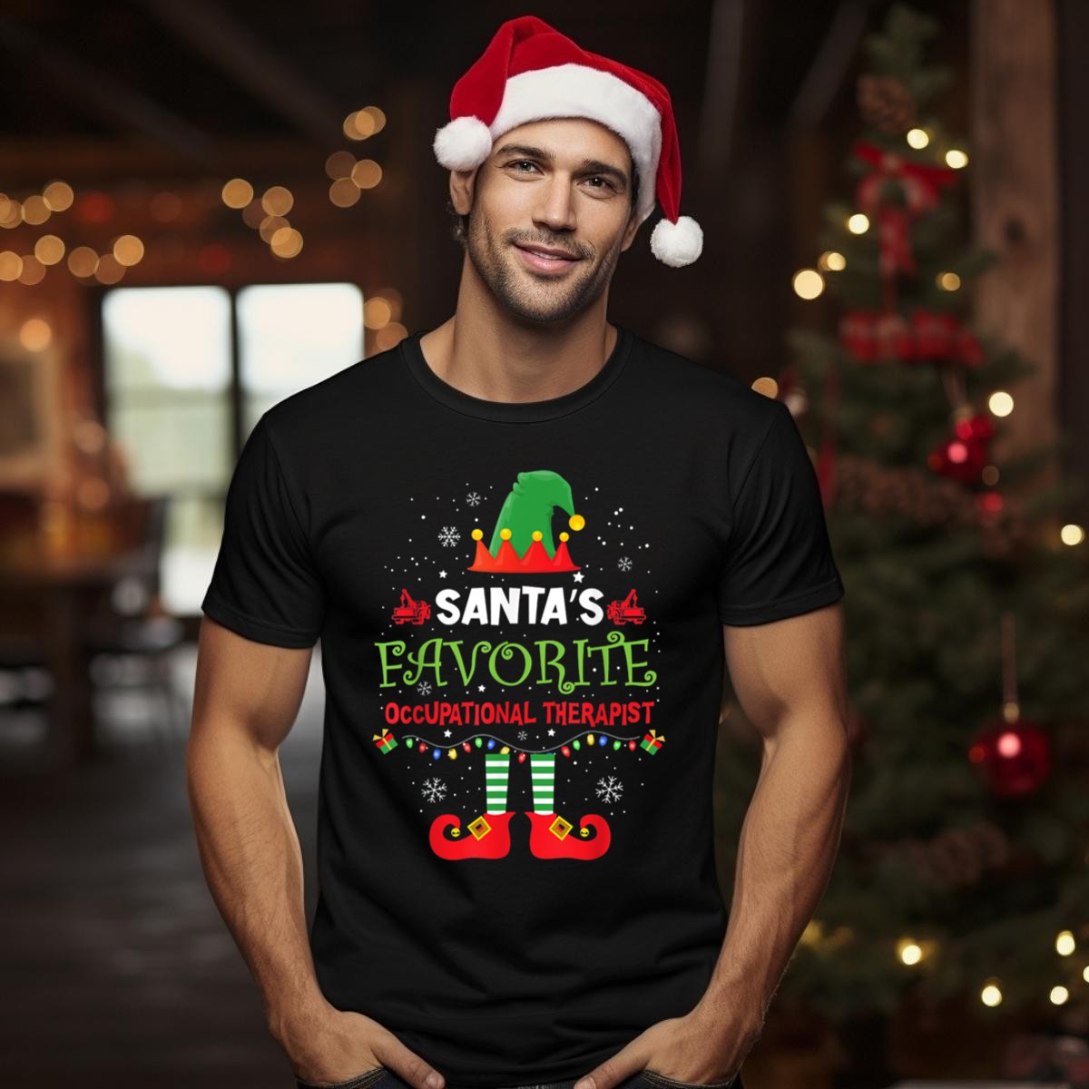 Celebrate the holiday spirit with our “Santa’s Favorite Occupational Therapist” T-shirt, a perfect blend of festive cheer and professional pride! This fan-made design features playful elf hat lights and snowflakes, making it a delightful choice for occupational therapists who want to spread joy during the Christmas season. Ideal for casual wear, themed events, or just daily outings, this shirt is a must-have for those who love to combine their passion for therapy with holiday fun!