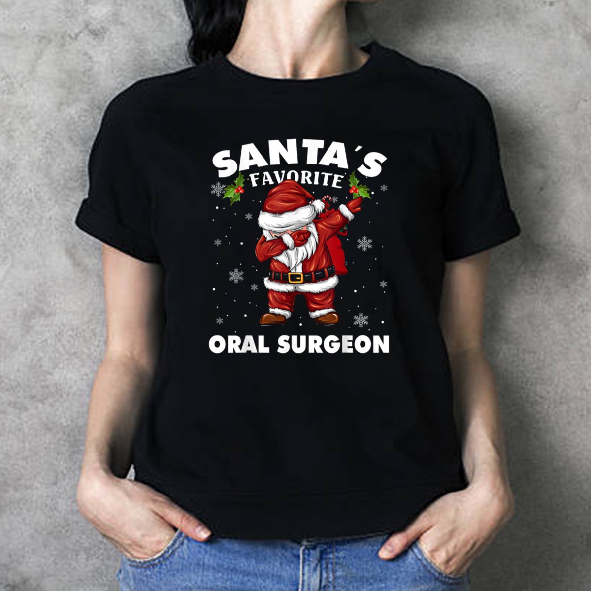 Celebrate the holiday season with a touch of humor in our Santa’s Favorite Oral Surgeon Dab Christmas Snowflakes T-Shirt! Perfect for dentists, oral surgeons, and anyone who loves to spread cheer while showcasing their profession, this shirt is ideal for casual wear, themed events, or daily activities. Made with a fan-made design printed right here in the USA, it combines festive spirit with a unique twist that is sure to turn heads and spark conversations.