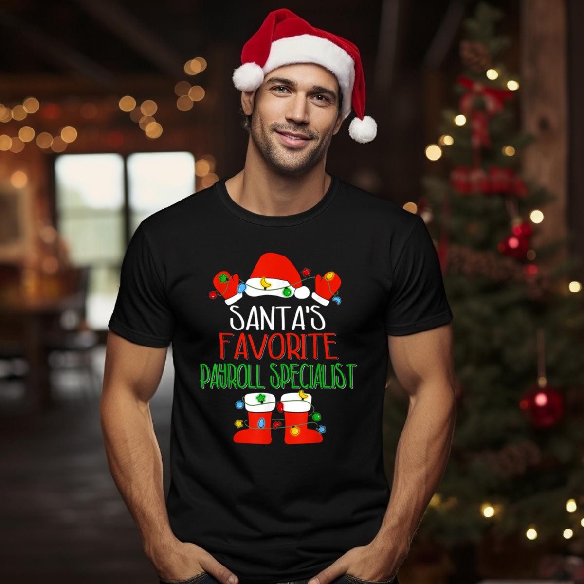 Celebrate the holiday spirit in style with our “Santa’s Favorite Payroll Specialist” graphic T-shirt! Perfect for those who love to blend humor with festive cheer, this shirt is an ideal choice for casual wear, themed events, or simply spreading joy during the holiday season. Featuring a playful design of Santa’s hat and boots adorned with Christmas lights, this fan-made creation is printed in the USA and is sure to bring smiles wherever you go.