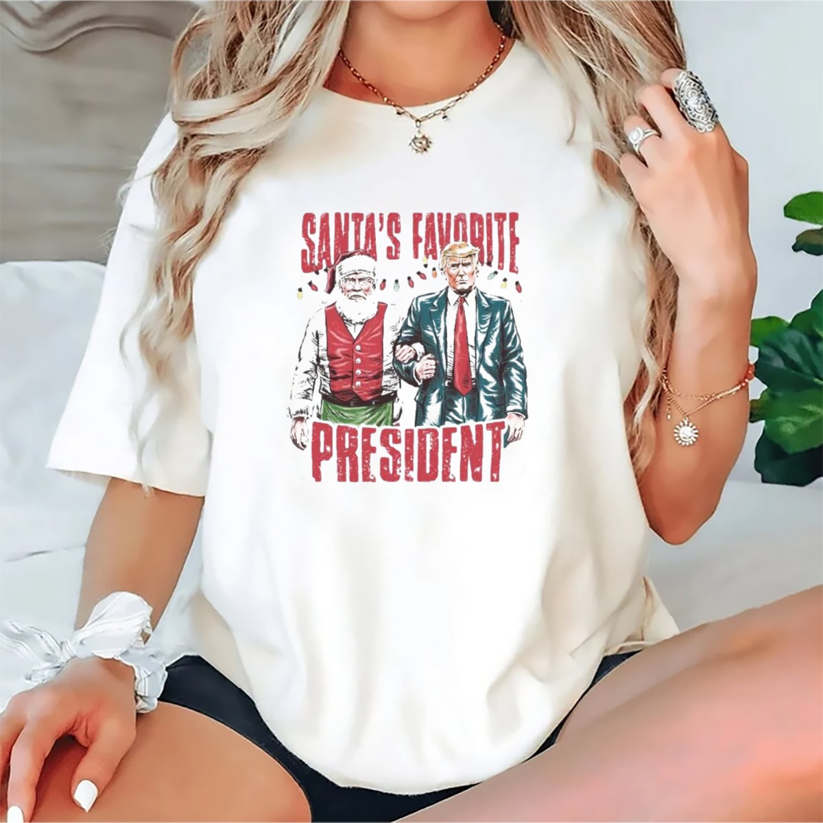 Celebrate the holiday season with a touch of humor in our Santa’s Favorite President T-Shirt, featuring a playful graphic of Santa Claus and Donald Trump. Perfect for anyone who enjoys a lighthearted twist on festive attire, this fan-made design is ideal for casual gatherings, themed events, or simply spreading cheer during the holidays. Made with love and printed in the USA, this shirt is sure to become a conversation starter at any Christmas celebration!